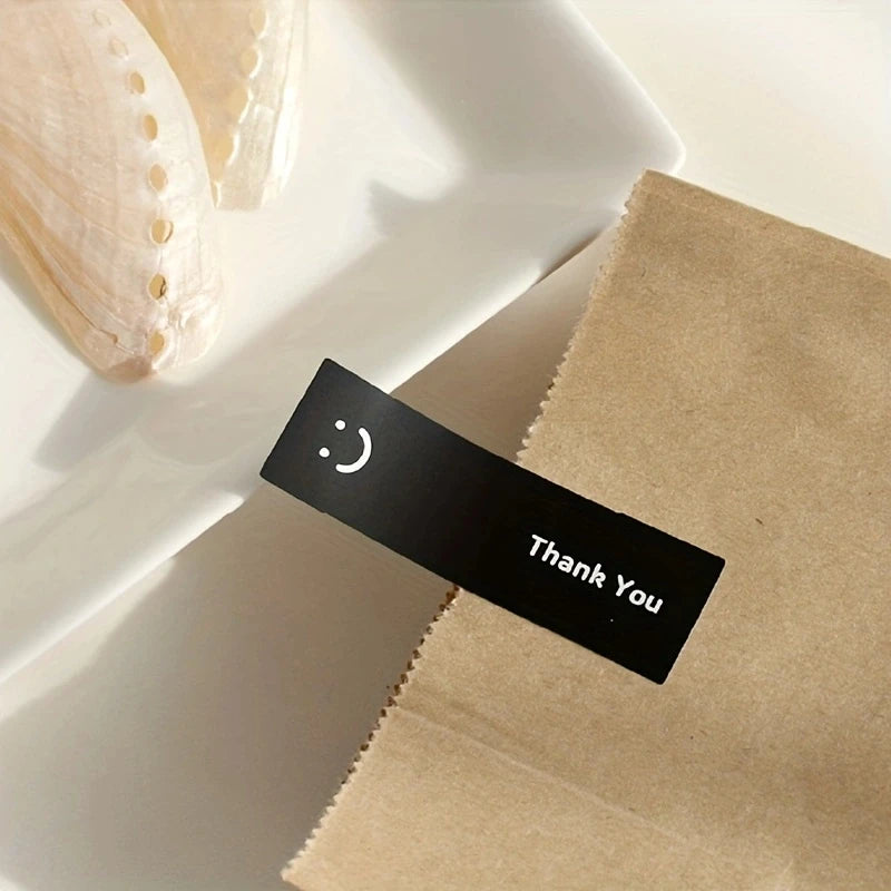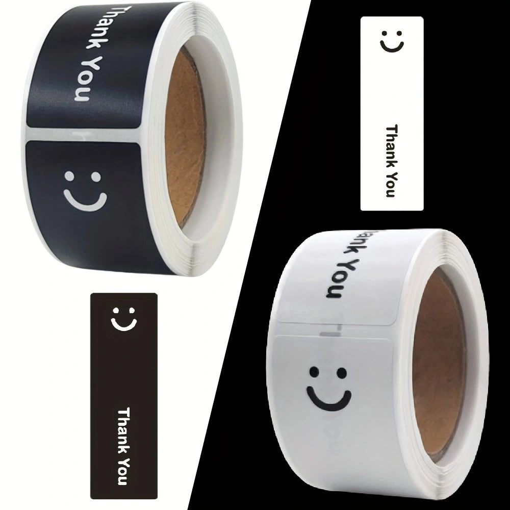 120PCS/Roll Simple Smile Face Thank You Stickers, Black/White,1.0x3.0in, for Gift Sealing & DIY Decor