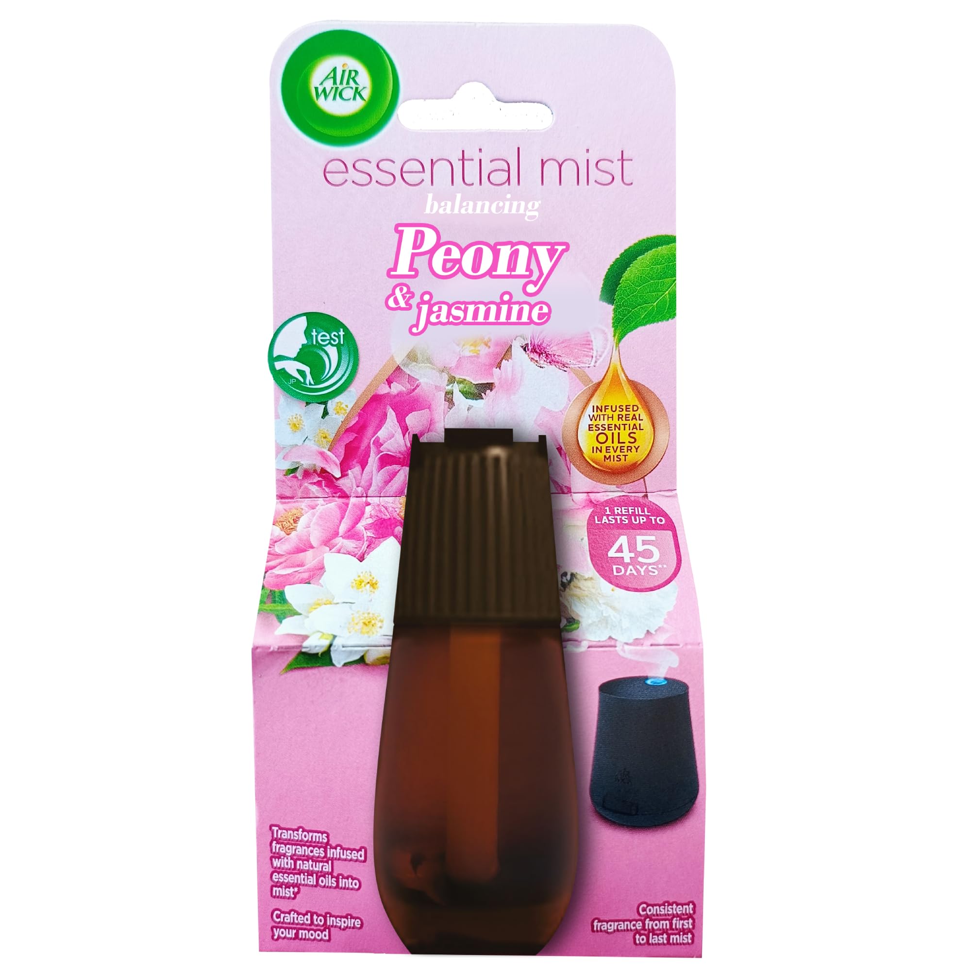 Details: Airwick Essential Mist Refill is designed for use with Airwick Essential Mist Automatic Fragrance diffuser/device. Each refill contains exquisite fragrances infused with natural Essential Oils, which when transformed into a fragrance mist elevates your home's ambience. The device has 3 fragrance intensity settings (low, medium, high) to ensure just the right amount of fragrance for any room. Each refill lasts up to 45 days (on low setting). Please do not tamper with the refill; recommended to use Airwick Essential Mist refill only with Airwick Essential Mist device.
