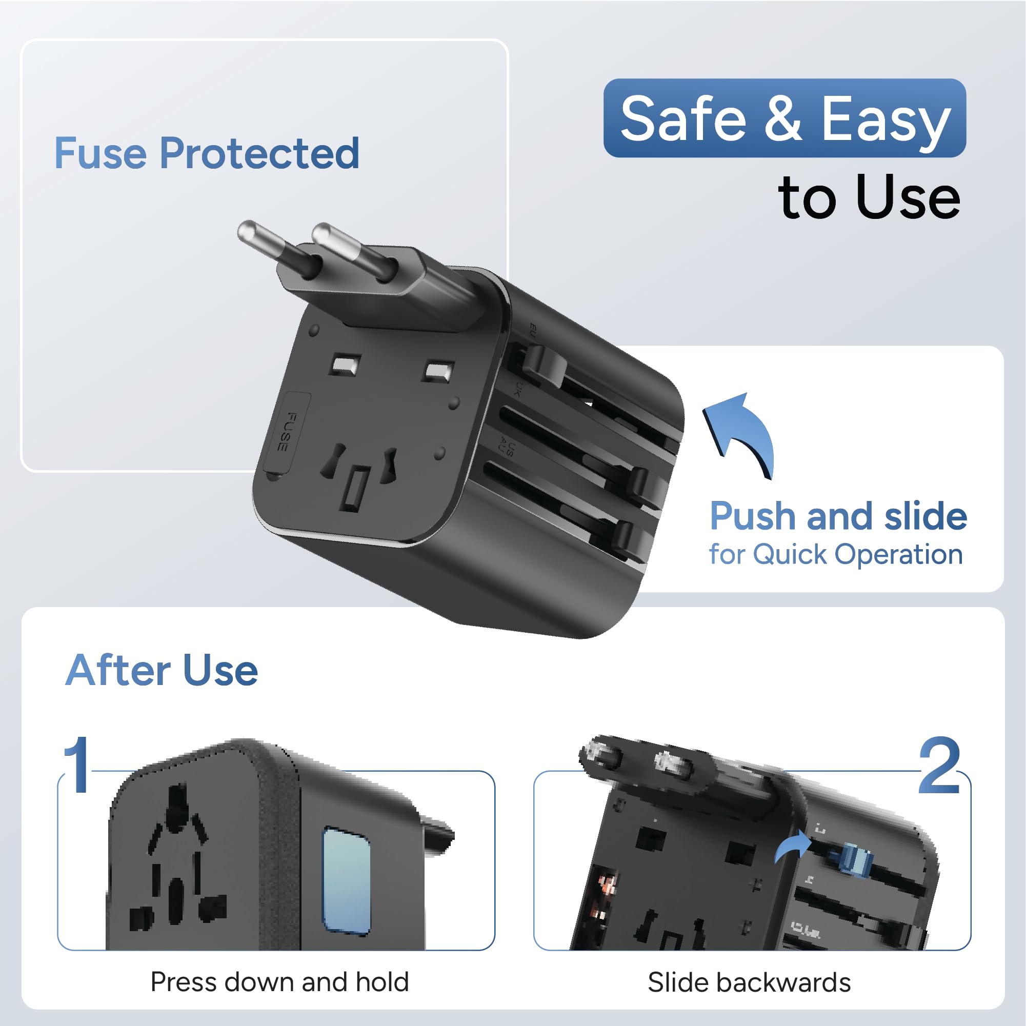 Compatibility in Over 150+ Countries: Engineered for global use, this adapter features pin configurations that are compatible with outlets in more than 150 countries, eliminating the need for multiple adapters during international travel.
