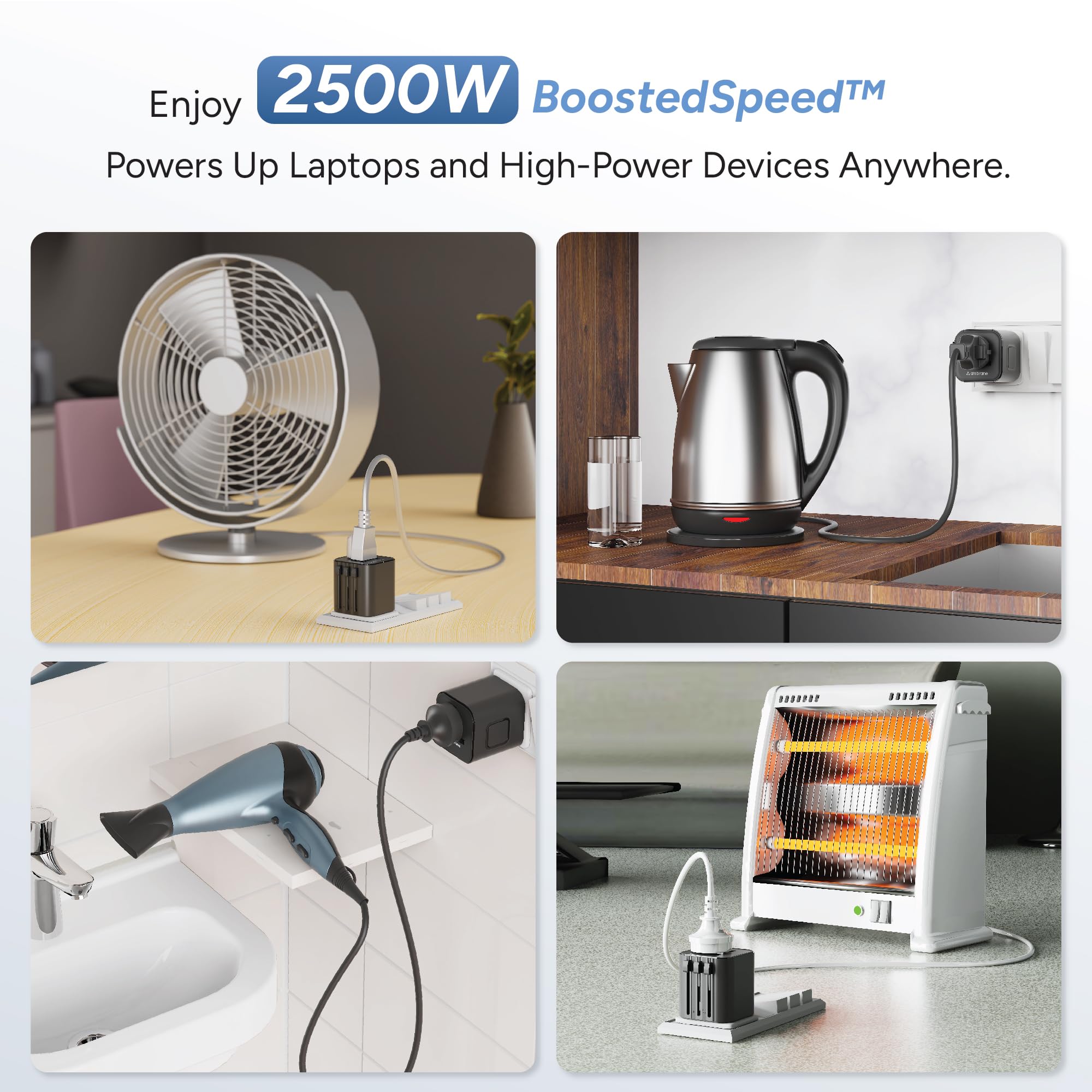 Ambrane Universal Travel Socket, International All in One Worldwide Travel Adapter Socket with 2500W High Power Output with 9 Hole Universal Socket, Compatible in 150+ Countries (ATA-03, Black)