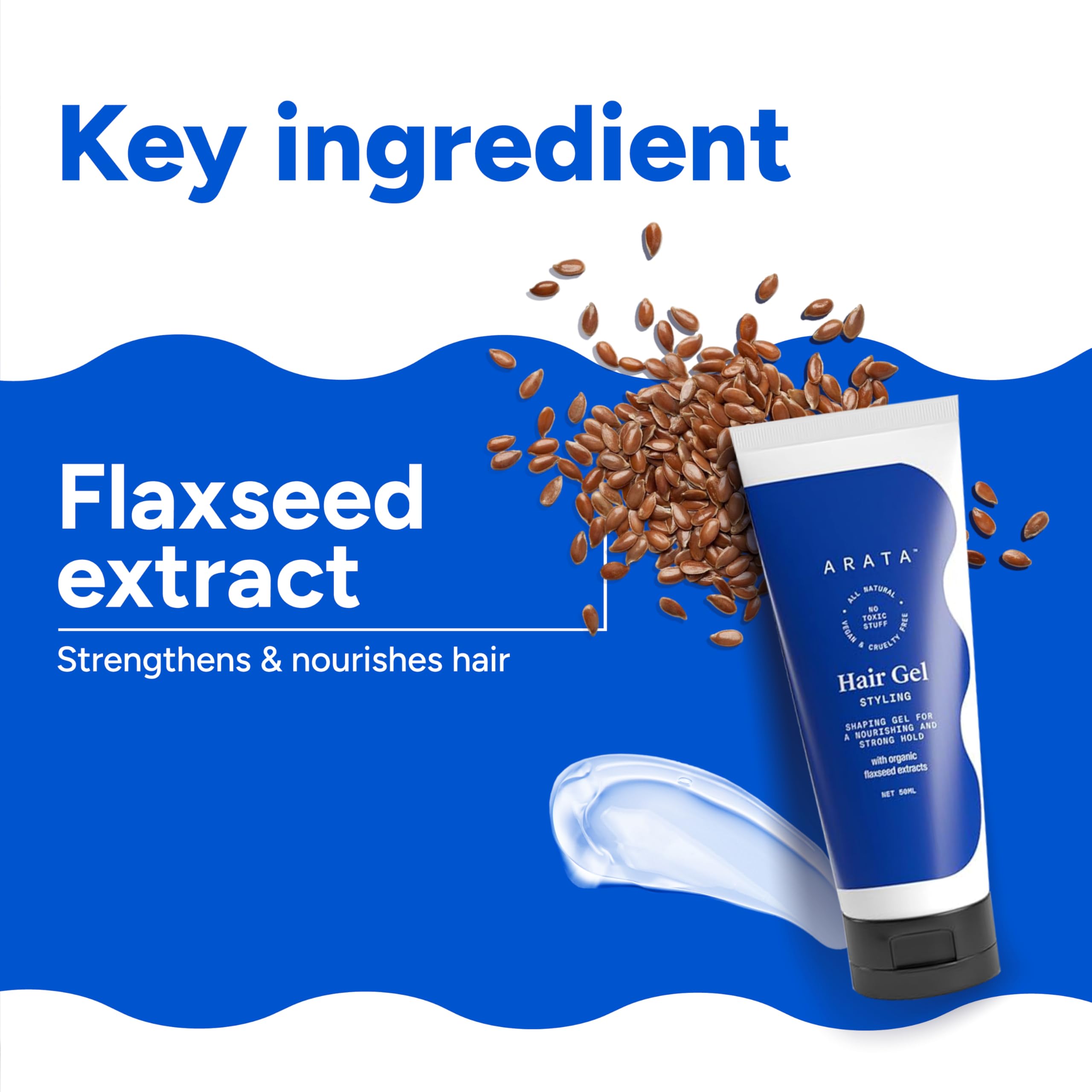 Arata Flax Seed Extract Styling Hair Gel | Medium to Strong Hold | Sleek, Slicked Back Styles | Manages Frizzy Hair and Flyaways | Non-Sticky, Alcohol Free Formula | 50 ML