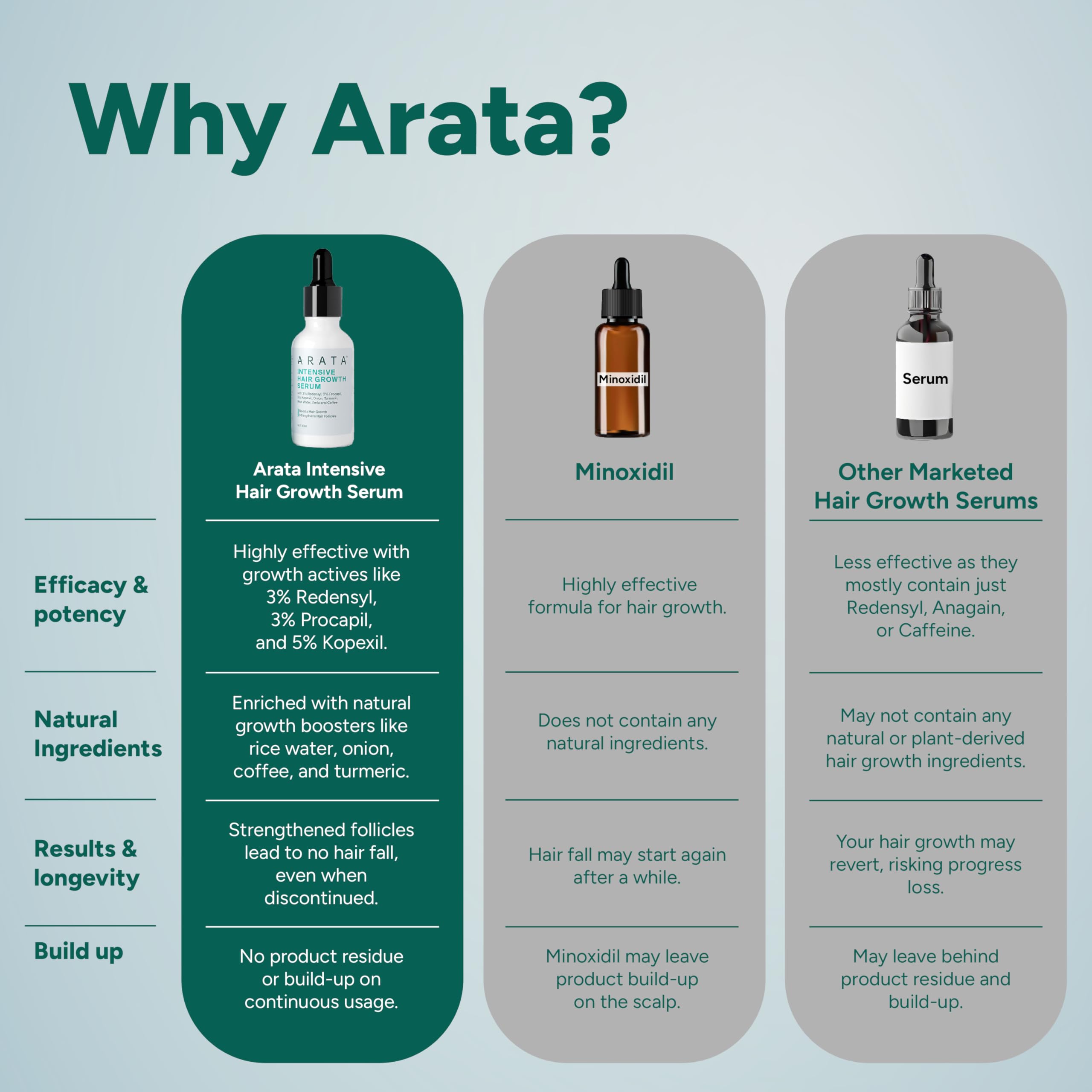 Arata Hair Growth Serum (30ml) with 3% Redensyl, 3% Procapil, 5% Kopexil, Caffeine & Rice Water | No Minoxidil | Supports Hair Growth | Helps Reduce Hairfall | Serum For Women and Men