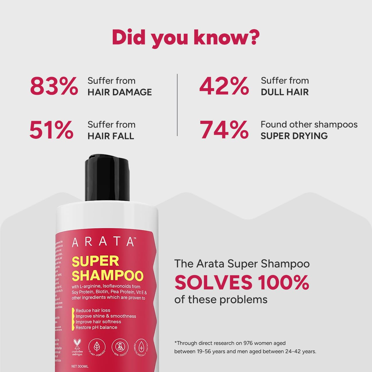 Arata Super Shampoo (300ml) with Argan Oil, Biotin & Soy Protein| Prevents Hair Loss | Boosts Hair Thickness | Reduces Breakage | Fights Microbial Infections | Adds Shine | Shampoo For Women & Men