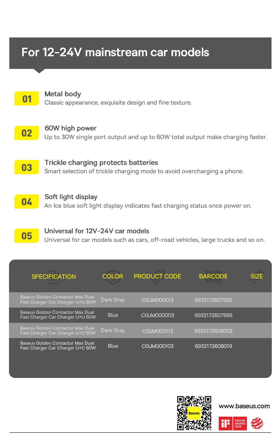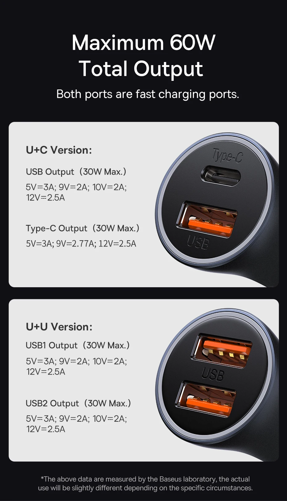 High Output Power:Delivers a combined 60W max output, ensuring rapid charging for your devices on the go.