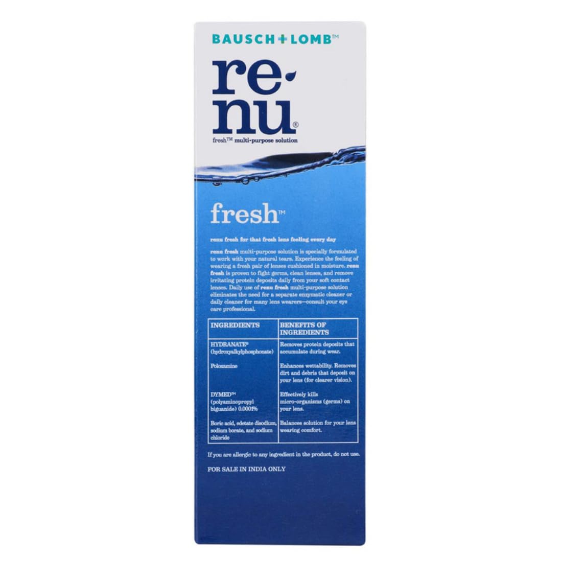 - Multipurpose Use: Renu Fresh is suitable for cleaning, rinsing, disinfecting, and storing soft contact lenses. It's an all-in-one solution that makes lens care simple and efficient.