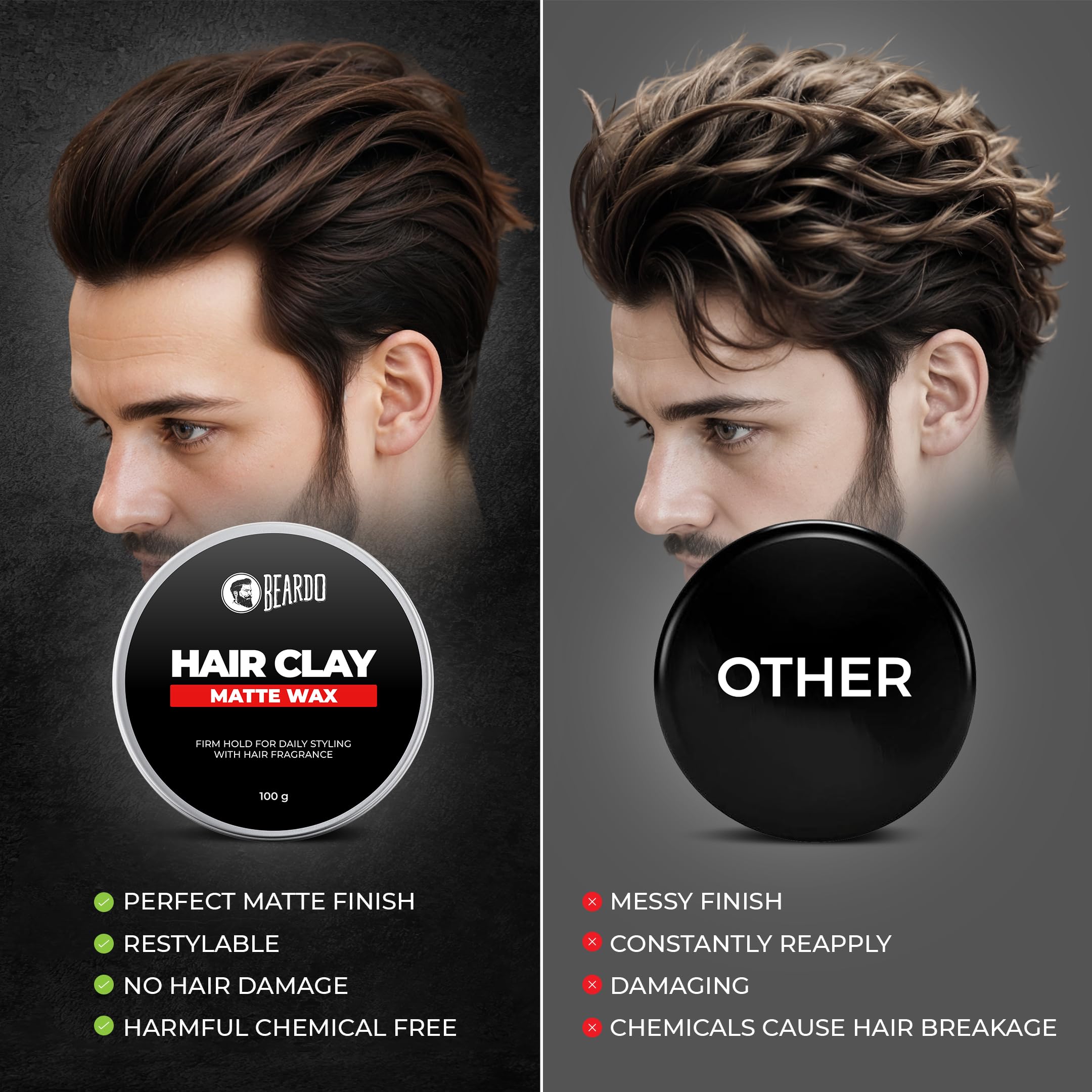 Beardo Hair Clay Wax for Men, 100 gm | Hair Clay for men | Styling Wax | Volumizing | Strong Hold | Restylable |Matte Finish | Easy to Wash Off | Texture Clay for Men