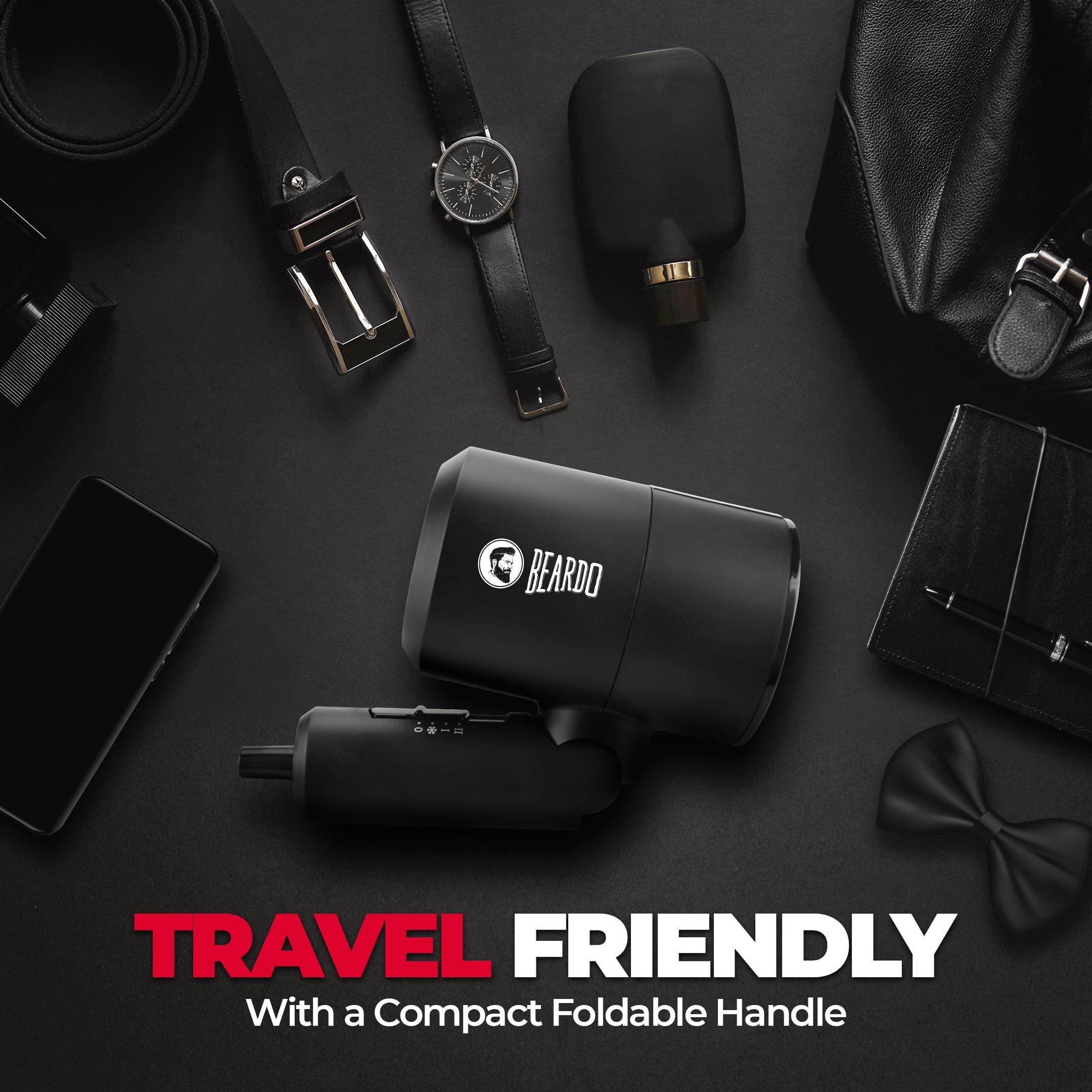 BEARDO Styling Gun Ultra Compact Hair Dryer | 1100 Watts Foldable Hair Dryer | 3 Heat 2 Speed Setting | Travel Friendly | Stylish Matte Black Finish | Gift For Friends | Gift for Husband