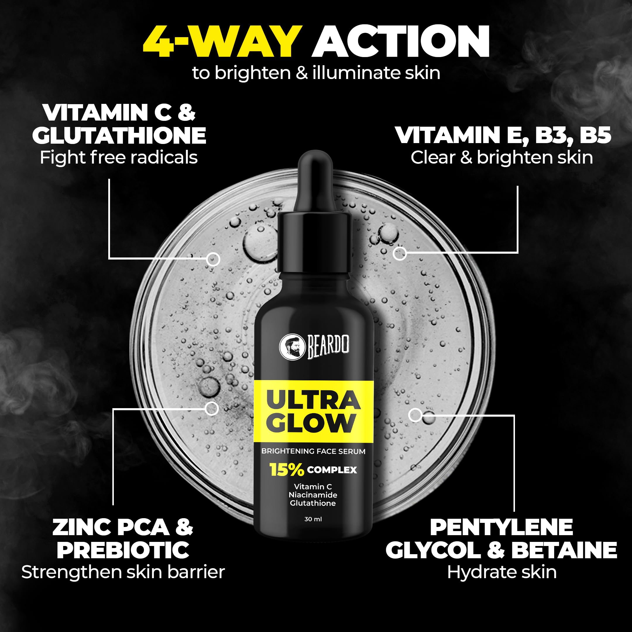 Beardo Ultra Glow Brightening Face Serum for Men | Powered by 15% Niacinamide, Vitamin C, Glutathione | Simple Serum for Men | Brightening Face Serum – 30ml