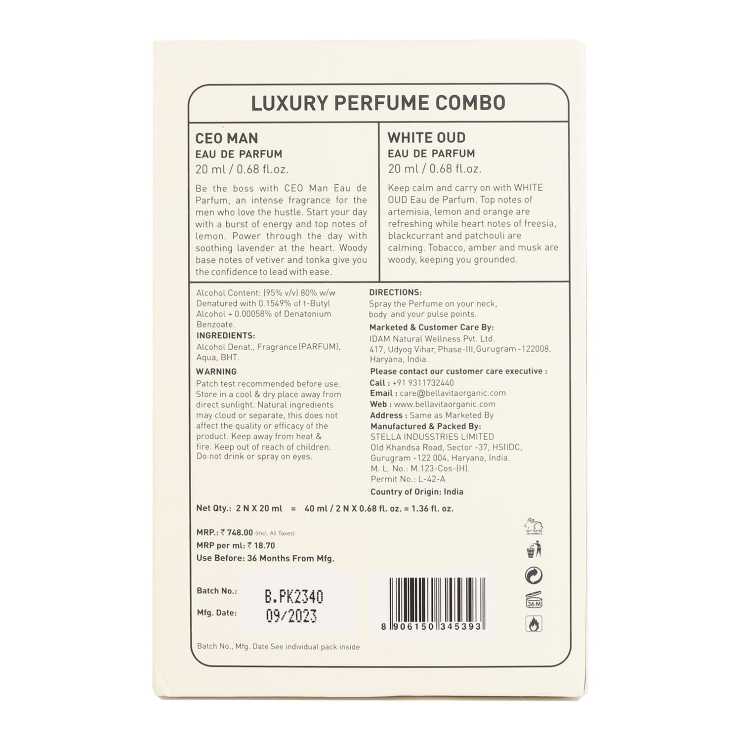 Details: CEO MAN - Life in the Fast Lane! Perfect for everyday wear, CEO MAN Eau De Parfum elevates the 'CEO' in you. Refreshingly daring yet long-lasting with top hints of lemon and sugar delicately energising with Lavendar at its heart and finally, arise the vetiver, moss and tonka's sharply-dressed base. This perfume honours your debonair and charismatic personality, allowing you to be true to yourself, just with the 'CEO' touch added to it! WHITE OUD - The Spice Odyssey. Charmed by the tangy Artemisian Lemon at the top, delicately distinct freesias at its heart amidst the enchanting amber and musk at its base, The White Oud is a revelation of all things 'sweet' and 'spice'! This is a blend of extremes, where the best of both worlds come together to create a perennially calming experience!