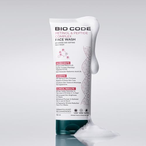 Bio Code Encapsulated Retinol 0.2% & Peptide Complex(Palmitoyl Tripeptide-5) 0.5%, Multi-Molecular Hyaluronic Acid 0.3% Face Wash – Advanced Age-Defy | AI-Enhanced Formula, 150ml