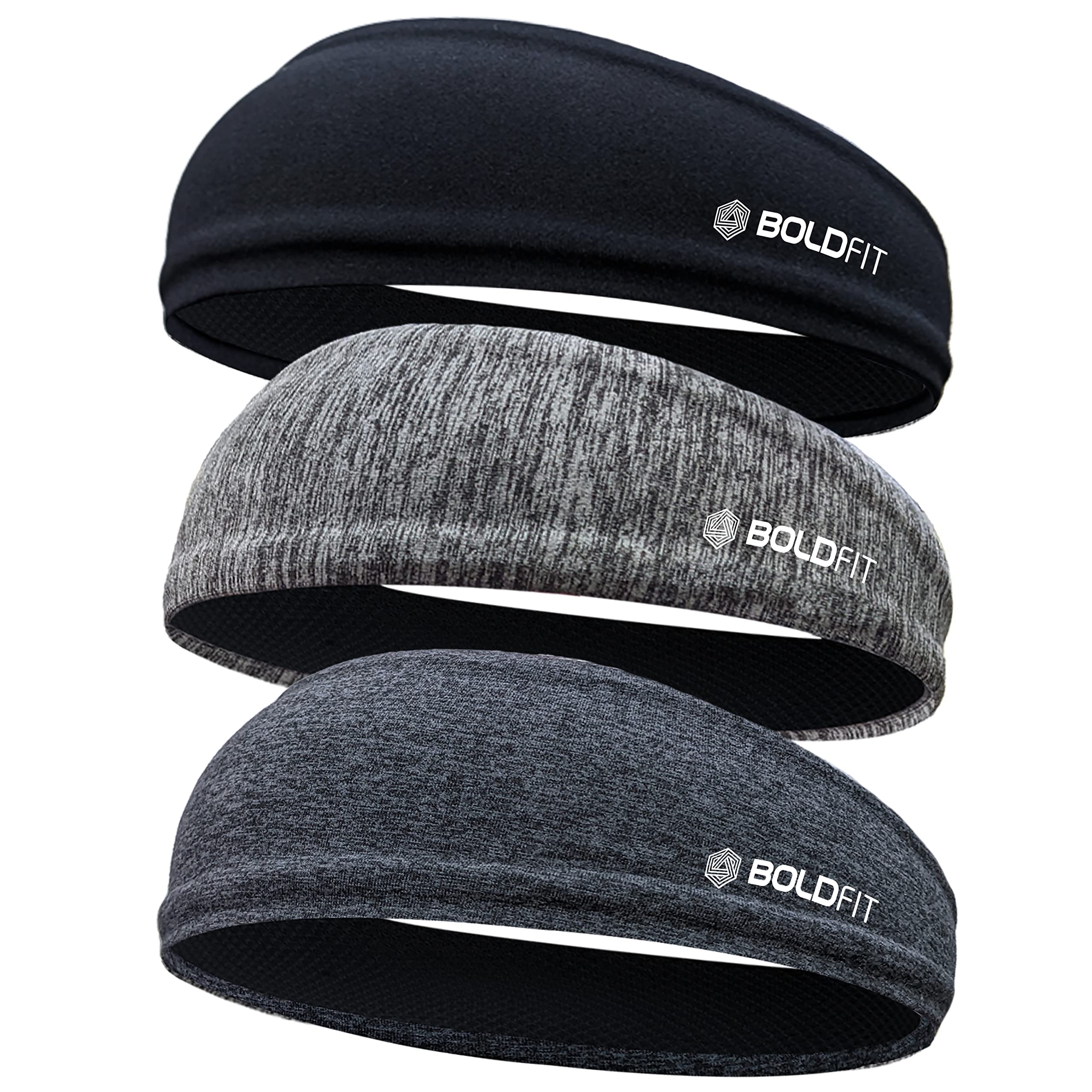 Boldfit Head Band for Man Sports Bandana for Men & Women Gym Hair Band for Men Workout, Running - Breathable, Non-Slip & Quick Drying Head Bands for Long Hair (Set of 3)