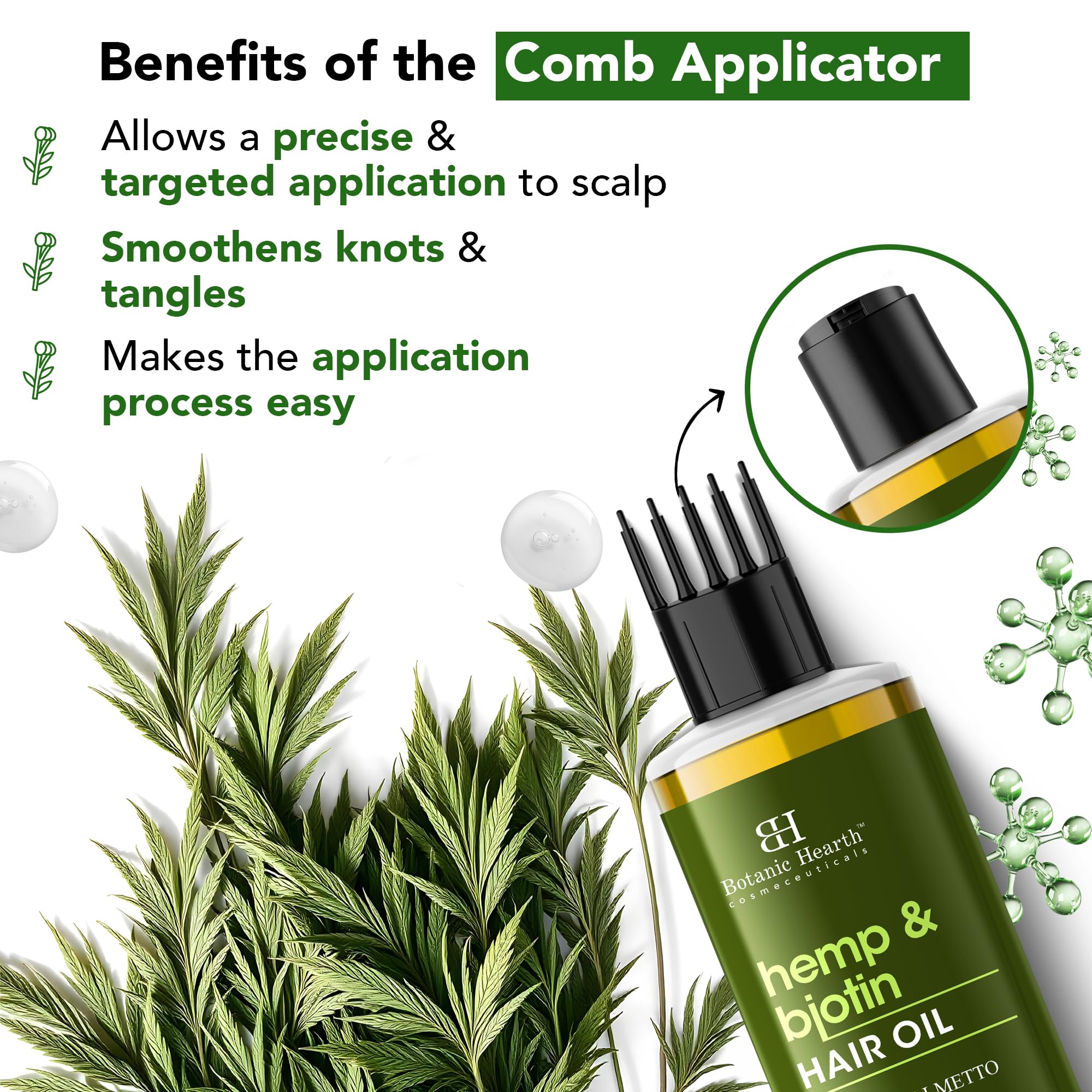 Botanic Hearth Hemp & Biotin Hair Oil for Hair Growth & Strength with Saw Palmetto – 150ml, Non-Sticky & Fast-Absorbing – 100% Natural Oils for Healthy Scalp & Hair – with Hair Oil Applicator