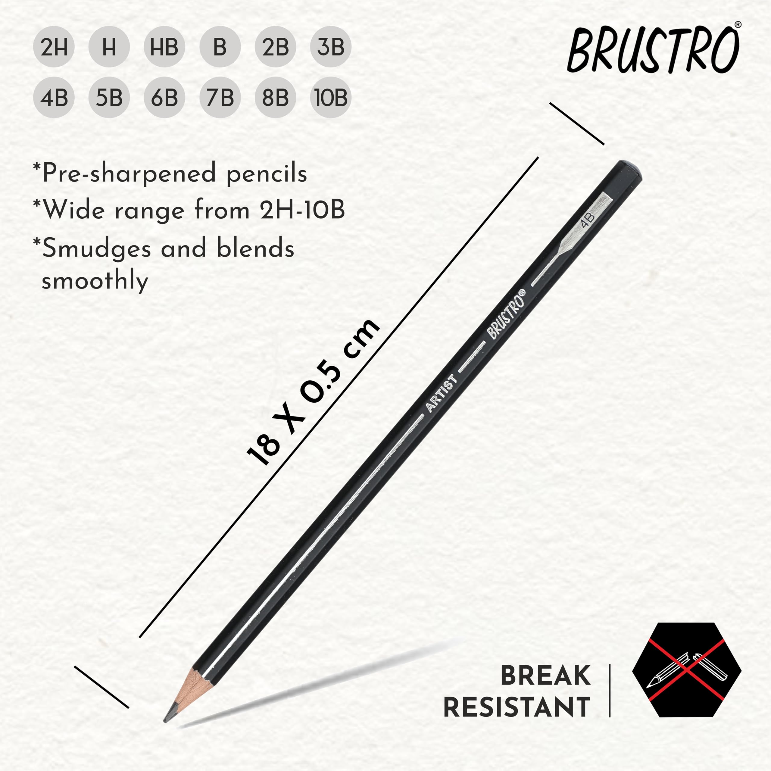 BRUSTRO Artist's Graphite Pencil set | Set of 5 (2B, 4B, 6B, 8B, 10B) | Pre Sharpened, Lightweight, Break-resistant, Ideal for Students and Adults, Students, Professional Drawing,Sketching,Mandala Art