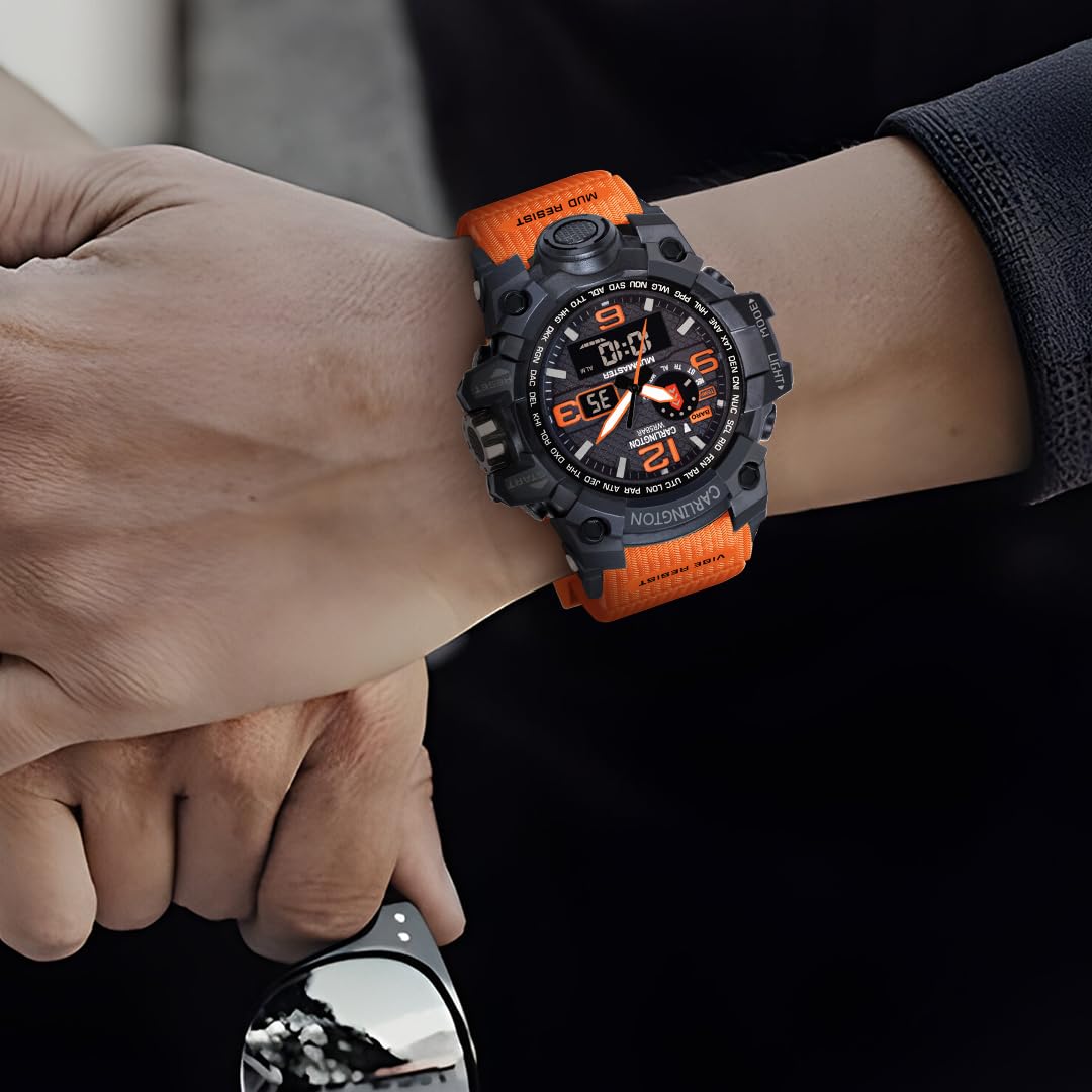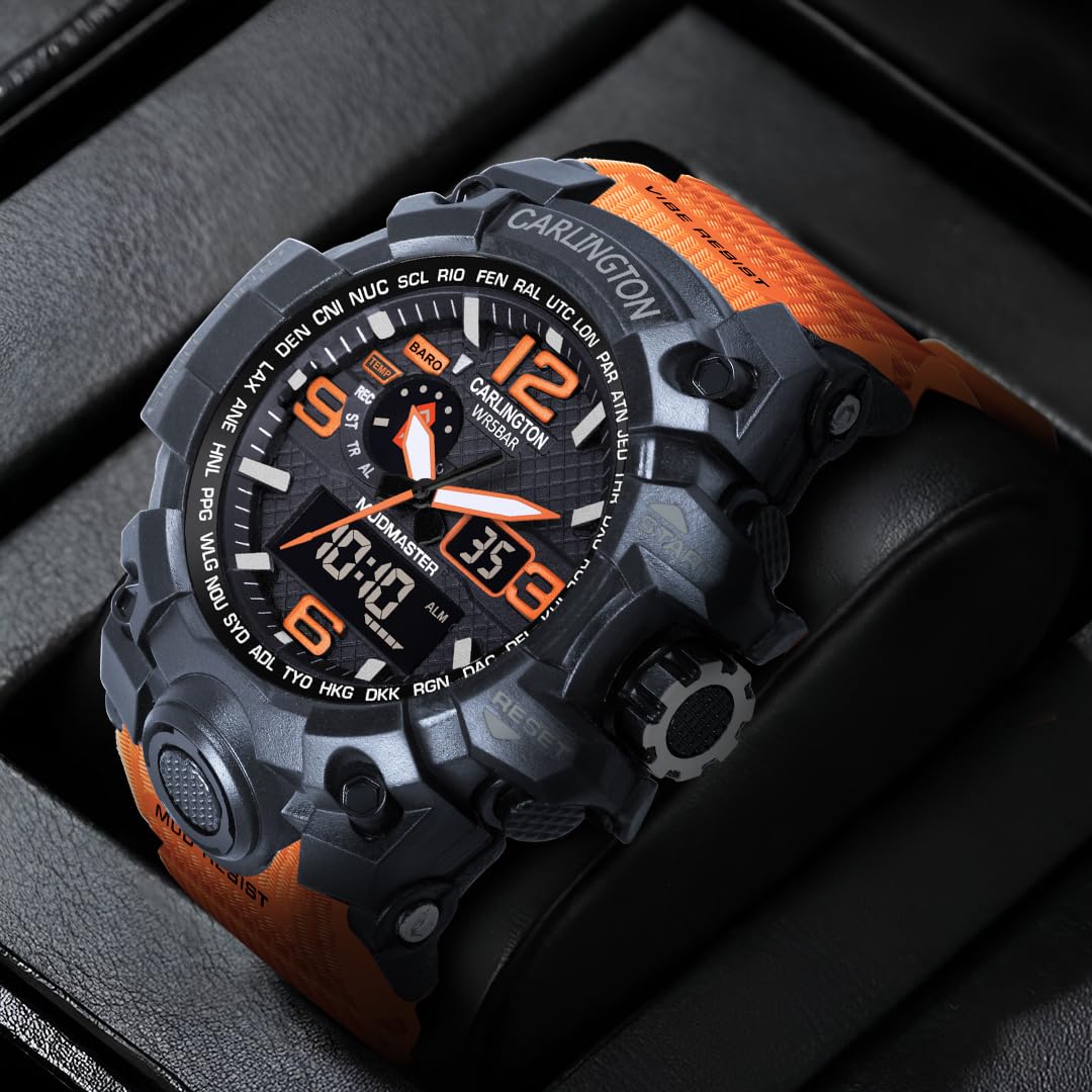 FUNCTIONALITY - This analog-digital watch features an alarm function, backlit display, calendar display, chronograph, stopwatch, and convenient buttons for start, reset, mode, and light. It ensures you stay on schedule, even in low-light conditions, and provides accurate timing for various activities. Its functional design makes it suitable for everyday wear and outdoor adventures.