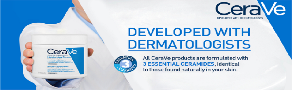 Details: Leave behind the potential causes of dry skin by welcoming CeraVe Moisturizing Cream into your skincare routine. This CeraVe Daily Moisturizing Cream is formulated with the goodness of three essential ceramides and hyaluronic acid to restore and maintain the protective skin barrier and retain the skin’s natural moisture. CeraVe’s unique MultiVesicular Emulsion Technology (MVE) makes this ceramide-infused body and face moisturizer extremely powerful as it releases a steady stream of moisturizing ingredients into the skin for all-day hydration. Its rich, non-greasy, fragrance-free, and non-comedogenic formula further makes it a suitable product for dry skin usage. What’s more! Those with mild eczema-prone skin can also benefit from this moisturizing cream, i.e., CeraVe Eczema Relief Cream (thanks to the fragrance-free, ceramide-infused gentle formulation). Developed in association with dermatologists and best suited for dry to very dry skin. CeraVe skincare products are developed following the fundamentals of the science of dermatology. To make the skin healthy from the core, all CeraVe products including CeraVe Moisturizing Cream for Dry Skin contain three essential ceramides (1, 3, 6-II) that are identical to those naturally found in the body to help restore the protective skin barrier. If you are looking for practical solutions for dry skin to enhance its health and appearance, selecting CeraVe Ceramide Moisturizer can prove to be the best decision.