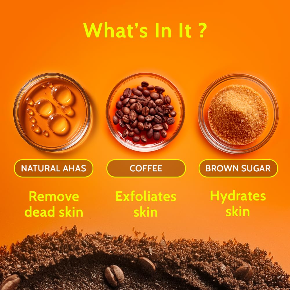Chemist at Play Exfoliating Body Scrub For Removing Tan & Dead Skin Cells | Rough & Bumpy Skin, Tanned & Pigmented Skin | For Smooth, Soft & Bright Skin | Natural AHAs | Coffee | For Men & Women | 75g