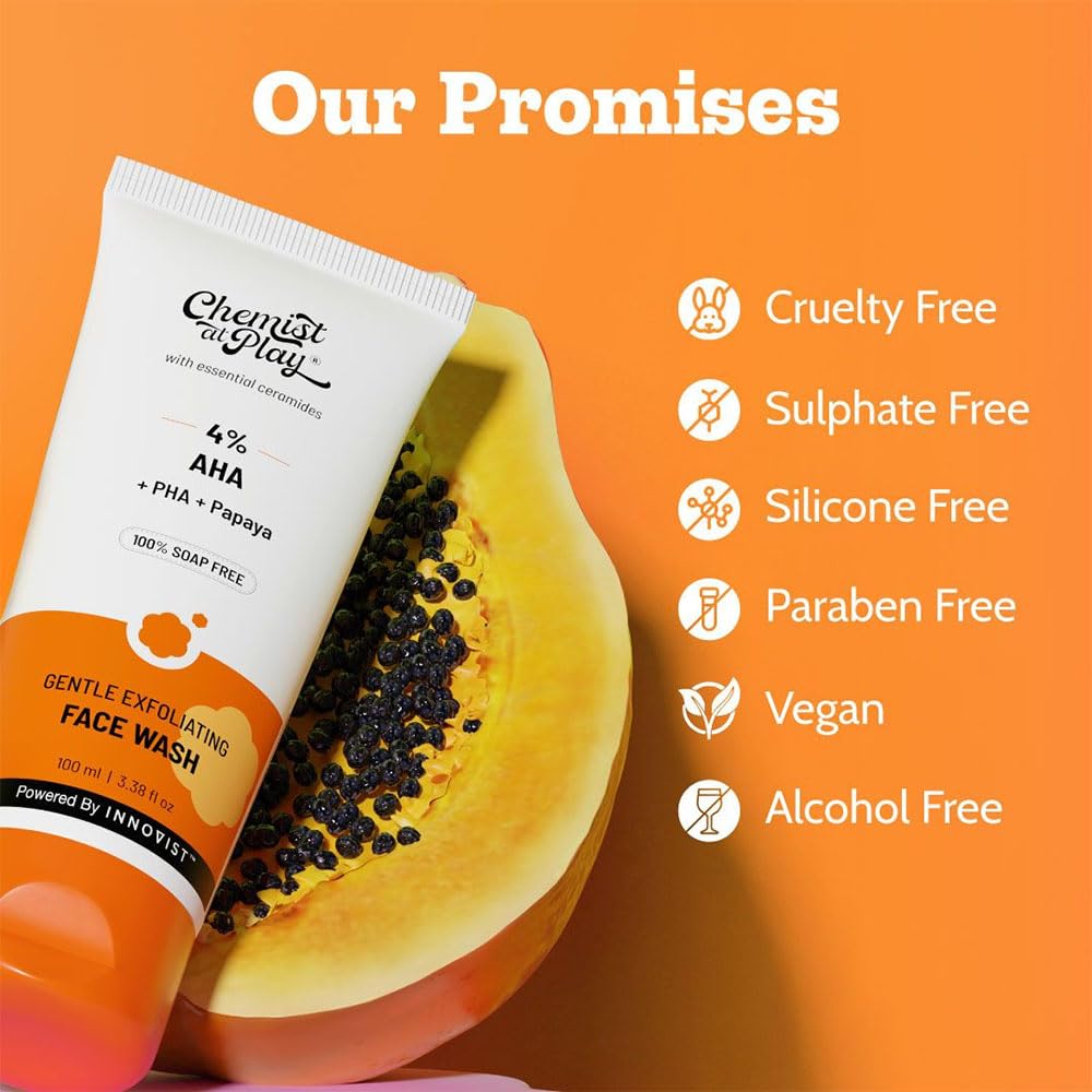 Chemist At Play Gentle Exfoliating Face Wash | Instant Glow | Exfoliates for Bright, Smooth Skin | Oily, Dry & Combination Skin | For Men & Women 100ml