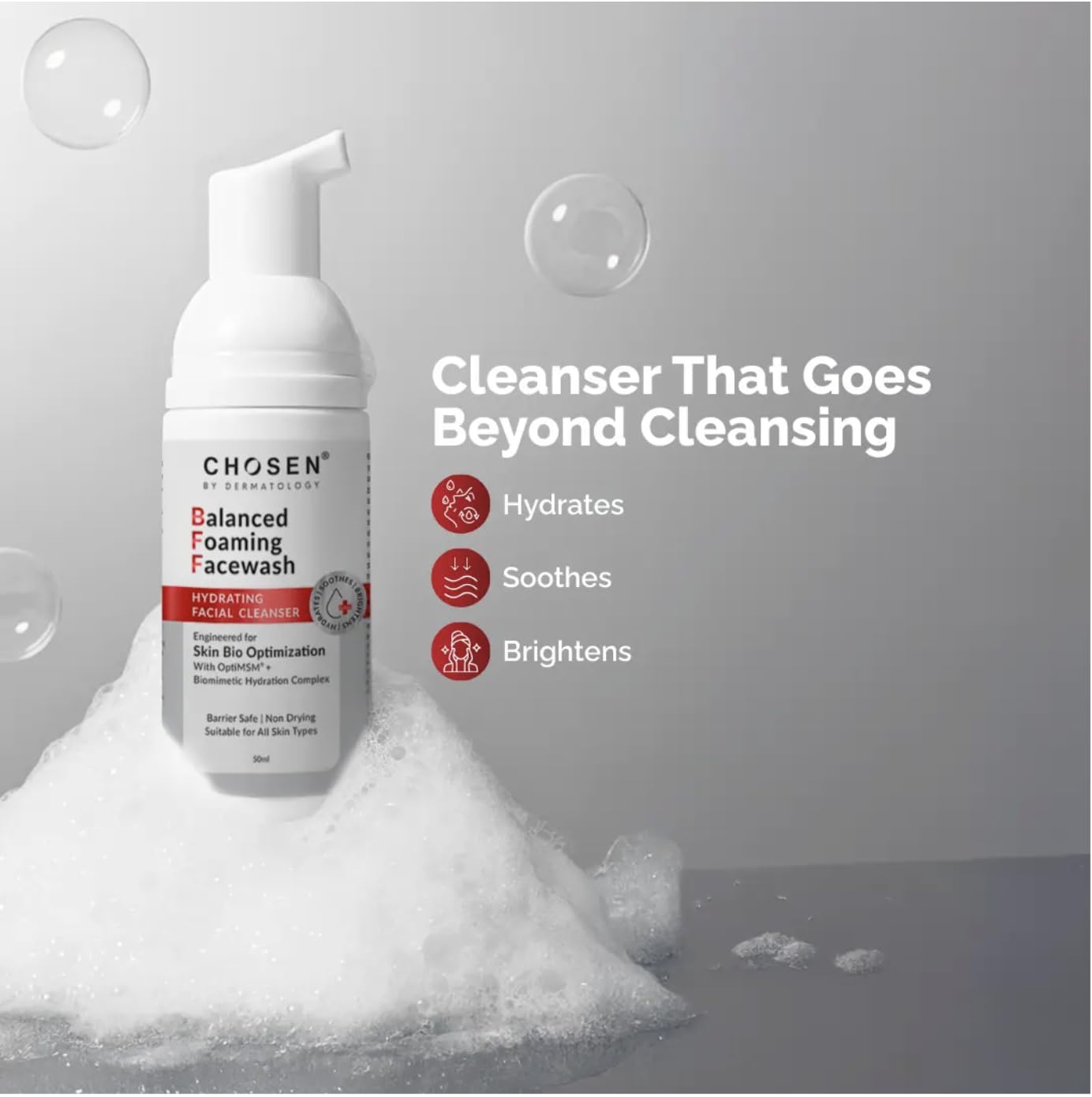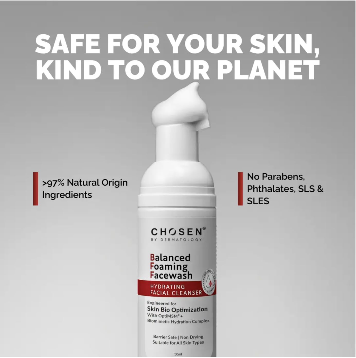 CHOSEN® Balanced Foaming Facewash| Paraben, Sulphate-Free | Gentle on Skin | Hydrating Face Cleanser with OptiMSM®| For Oily to Dry, Combination to Sensitive Skin - 50 ml