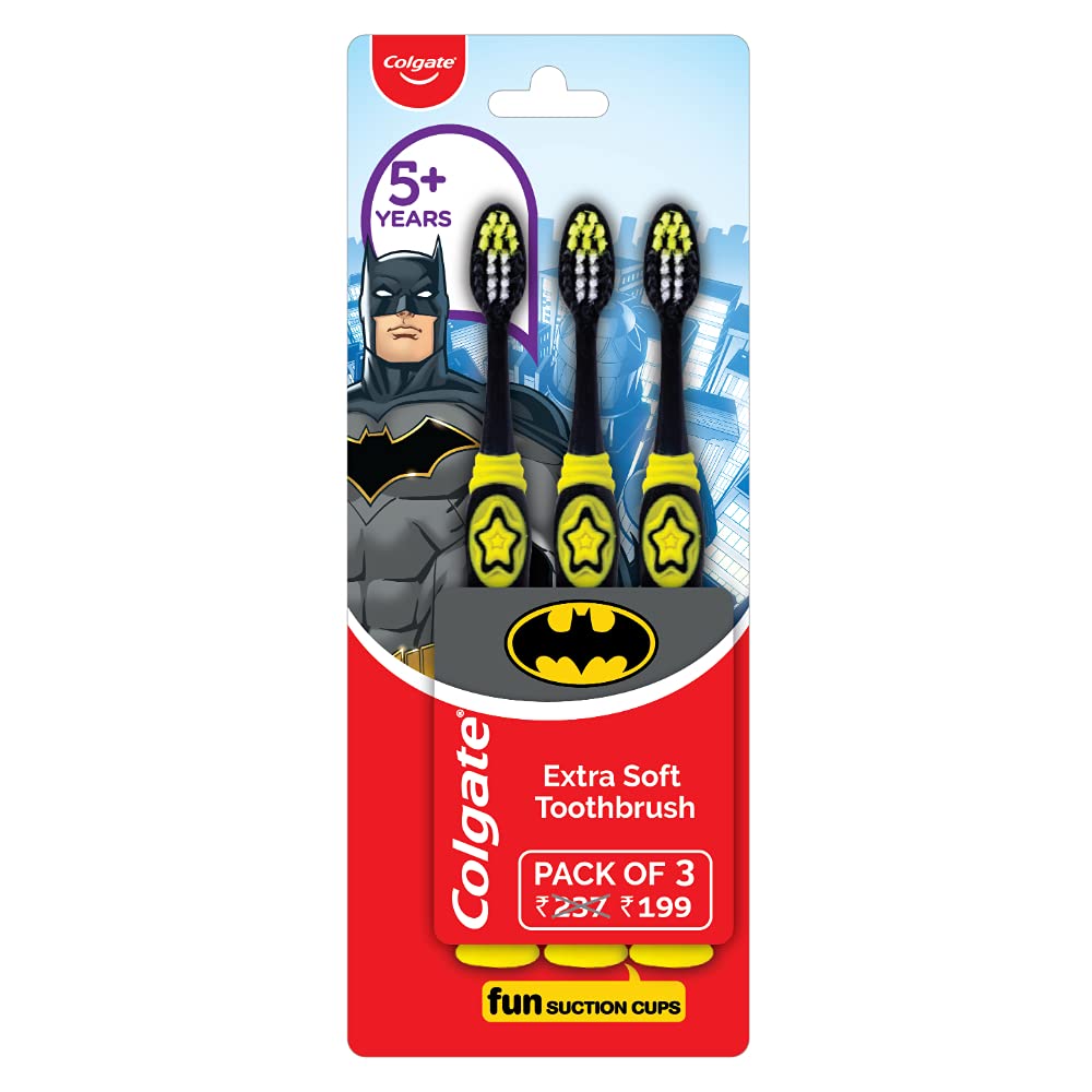 Details: Kids must brush their teeth at least 2 times a day and Colgate Kids Batman Toothbrush is a fun way to encourage good oral care habits early on! This attractive extra-soft bristle toothbrush has extra soft bristles especially designed for children. It is ideal for kids of age 5 years and above who have baby teeth or developing permanent teeth.