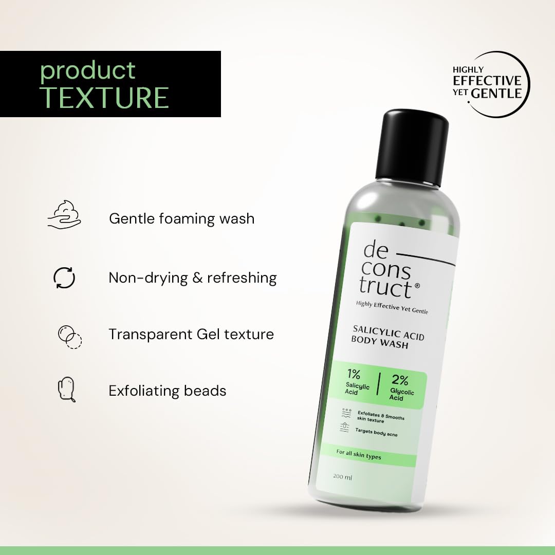 Deconstruct 1% Salicylic Acid Body Wash with 2% Glycolic Acid | Prevents Body Acne, Rough & Bumpy skin | Deeply cleanses skin | Shower gel for Women & Men- 200ml