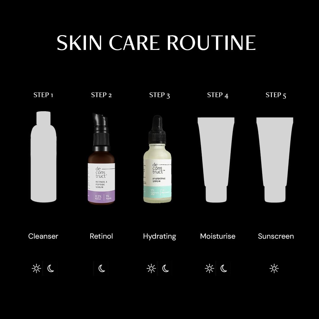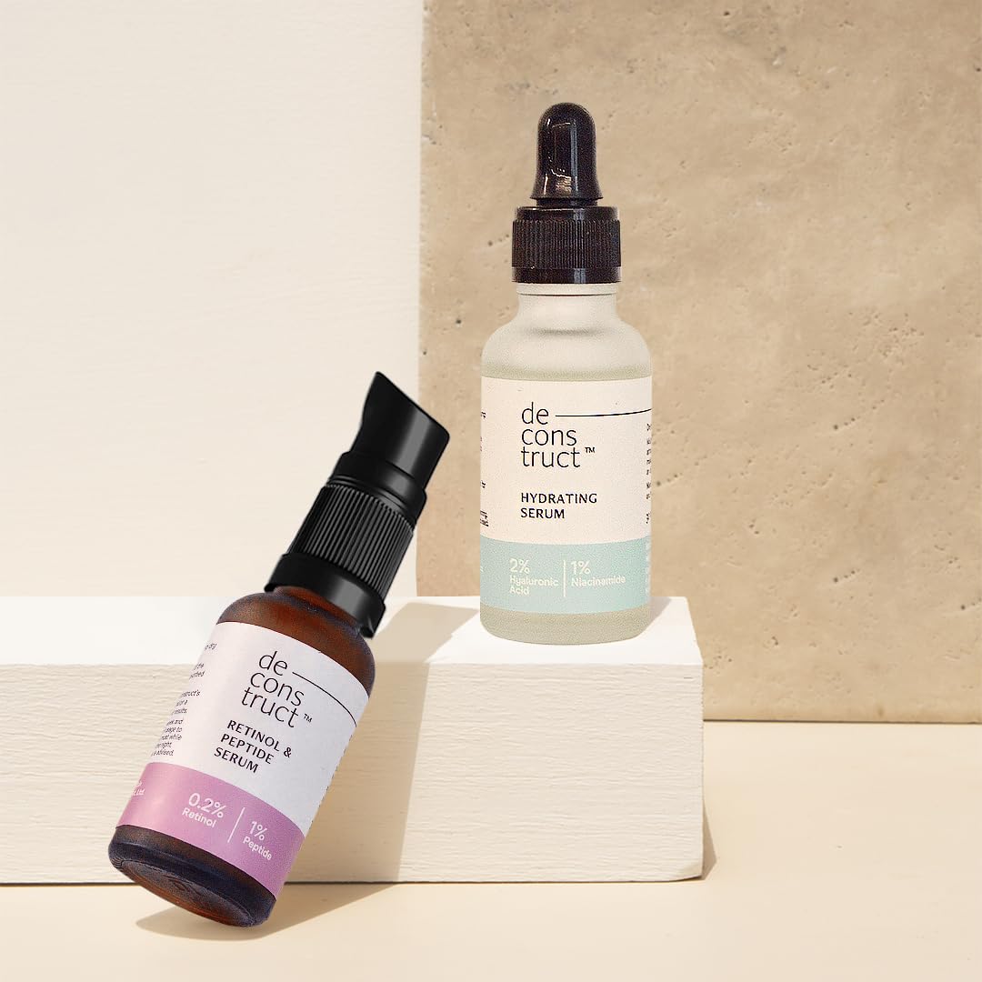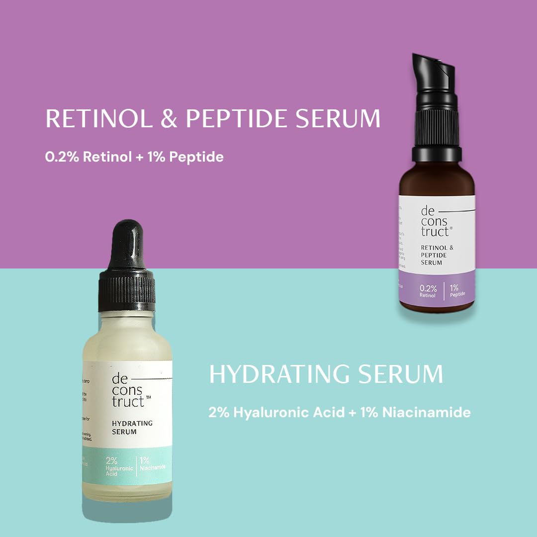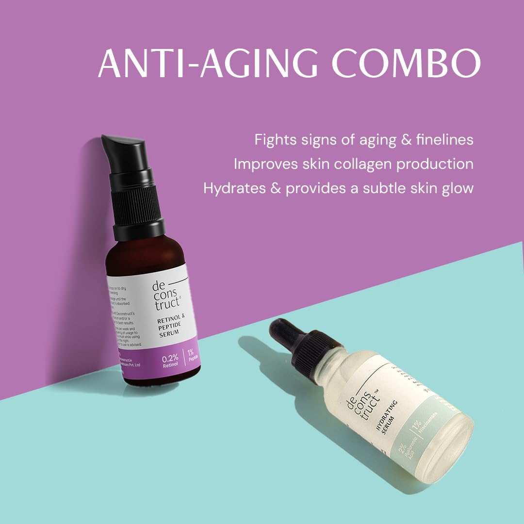 Deconstruct Anti Aging & Collagen Building Combo | 0.2% Retinol & 1% Peptide and 2% Hyaluronic Acid & 1% Niacinamide | For All Skin Types | 30ml each | Pack of 2