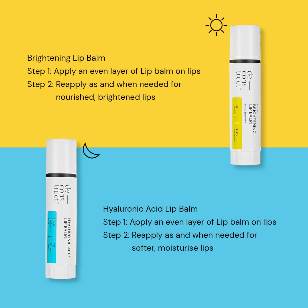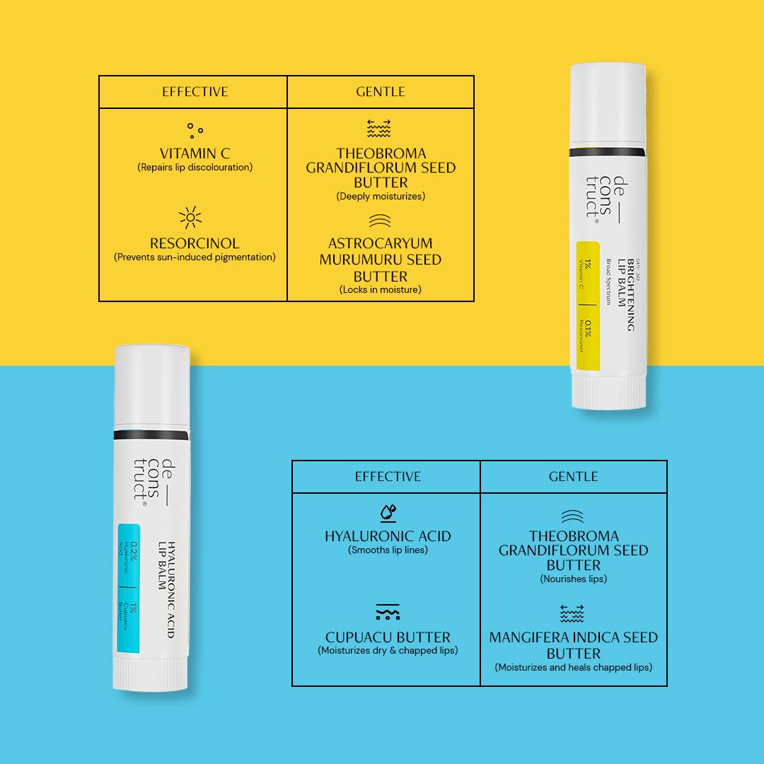 Deconstruct Bright & Hydrate Lip Duo | 1% Vitamin C & 0.1% Resorcinol And 0.2% Hyaluronic Acid & 1% Cupuacu Butter | Lip Balm For Women And Men | 4Gm Each | Pack Of 2, blue