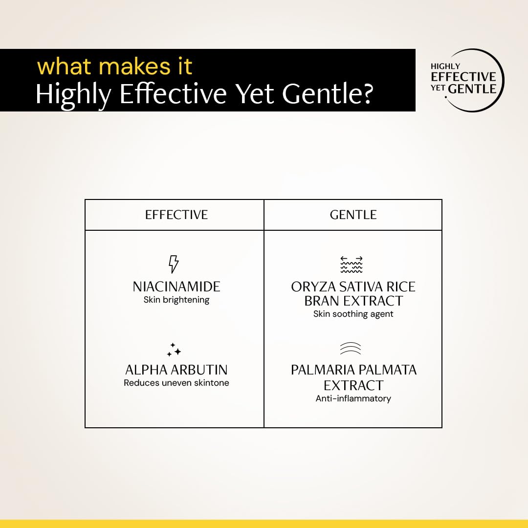 FACE BRIGHTENING SERUM FOR GLOWING SKIN: This face brightening serum duo of niacinamide and alpha arbutin increases each other’s efficiency, improving the benefits multifold to give an enhanced brightening, which makes it perfect face serum for glowing skin.