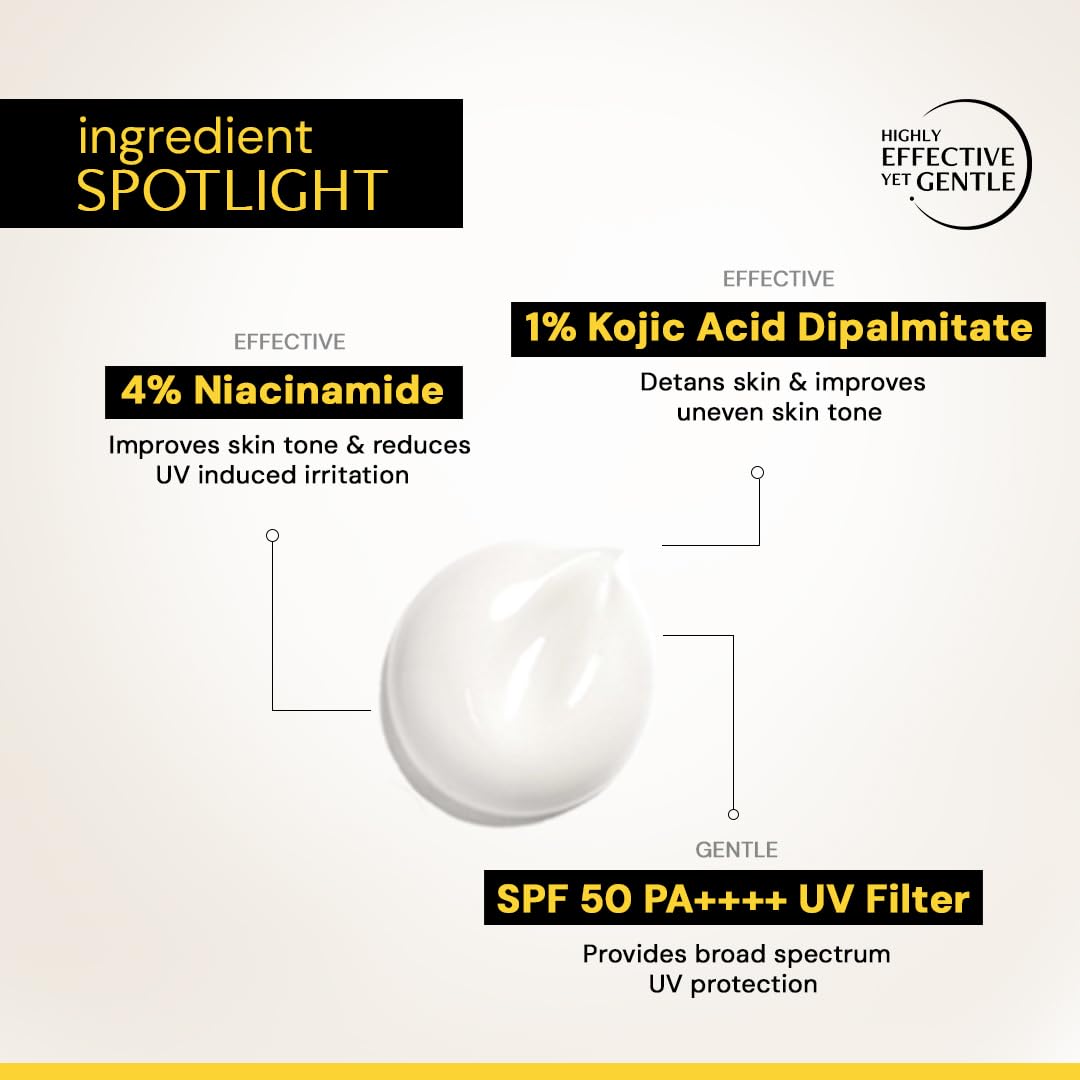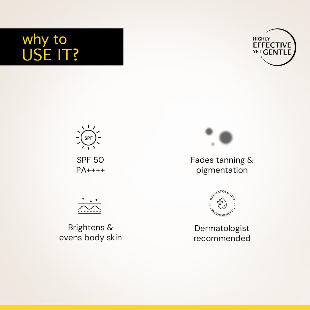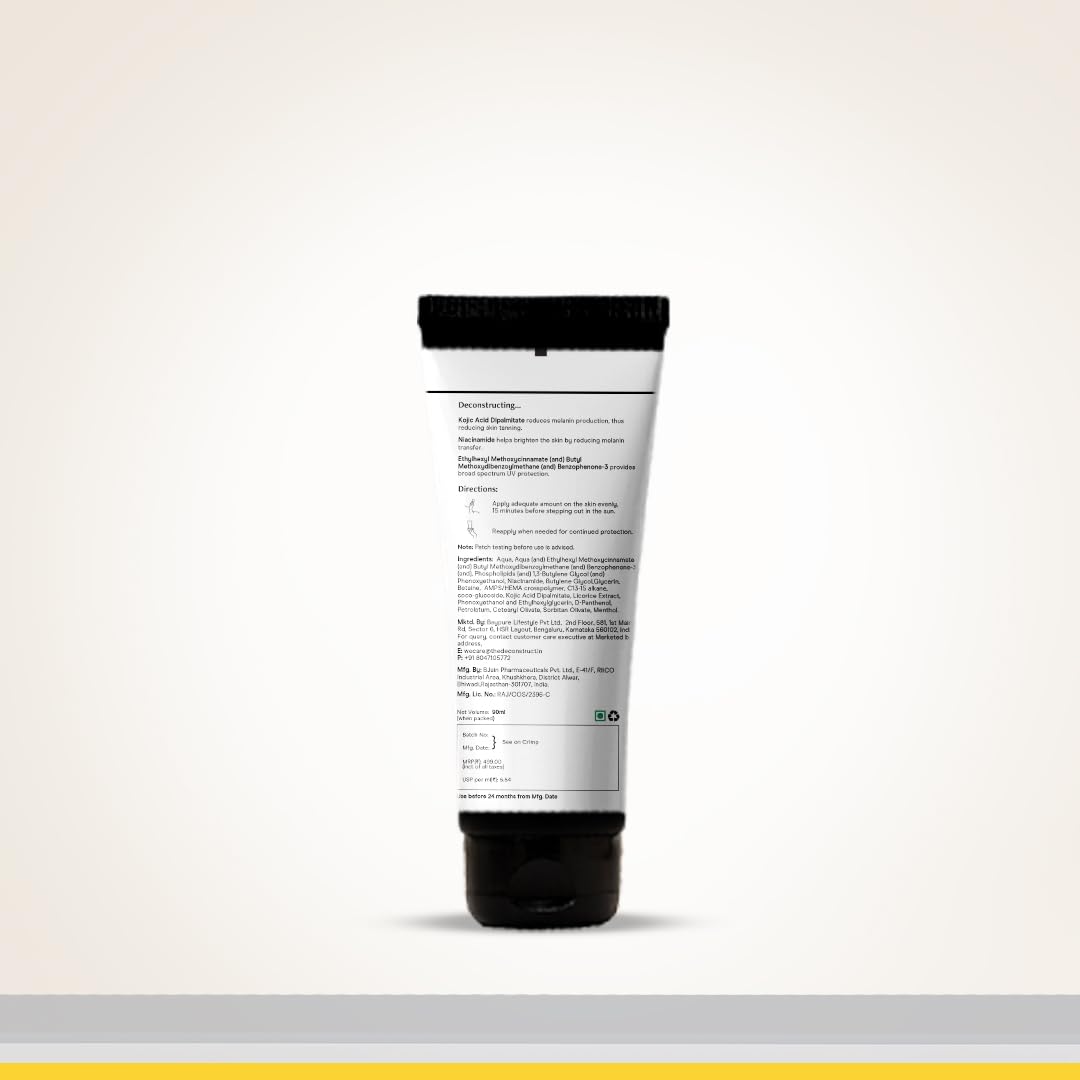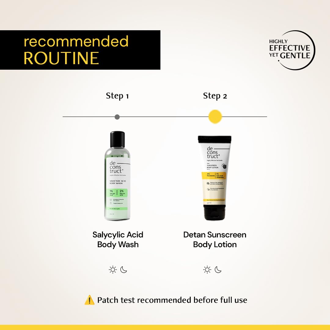 Deconstruct Detan Sunscreen Body Lotion SPF 50 PA++++ | Broad Spectrum UVA and UVB Protection| Lightweight , Water-Resisitent , Non-Greasy Formula | With Kojic Acid & Niacinamide | 90 ml