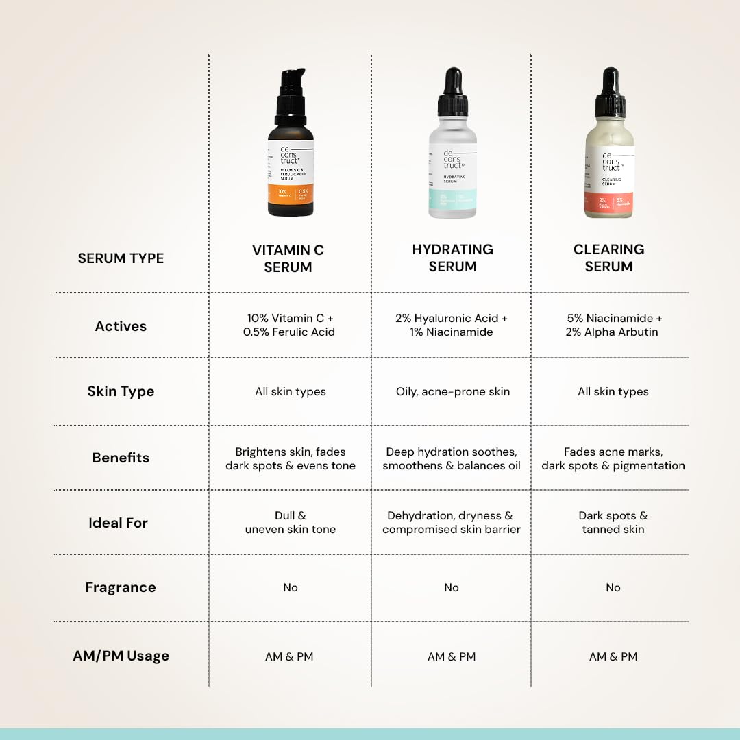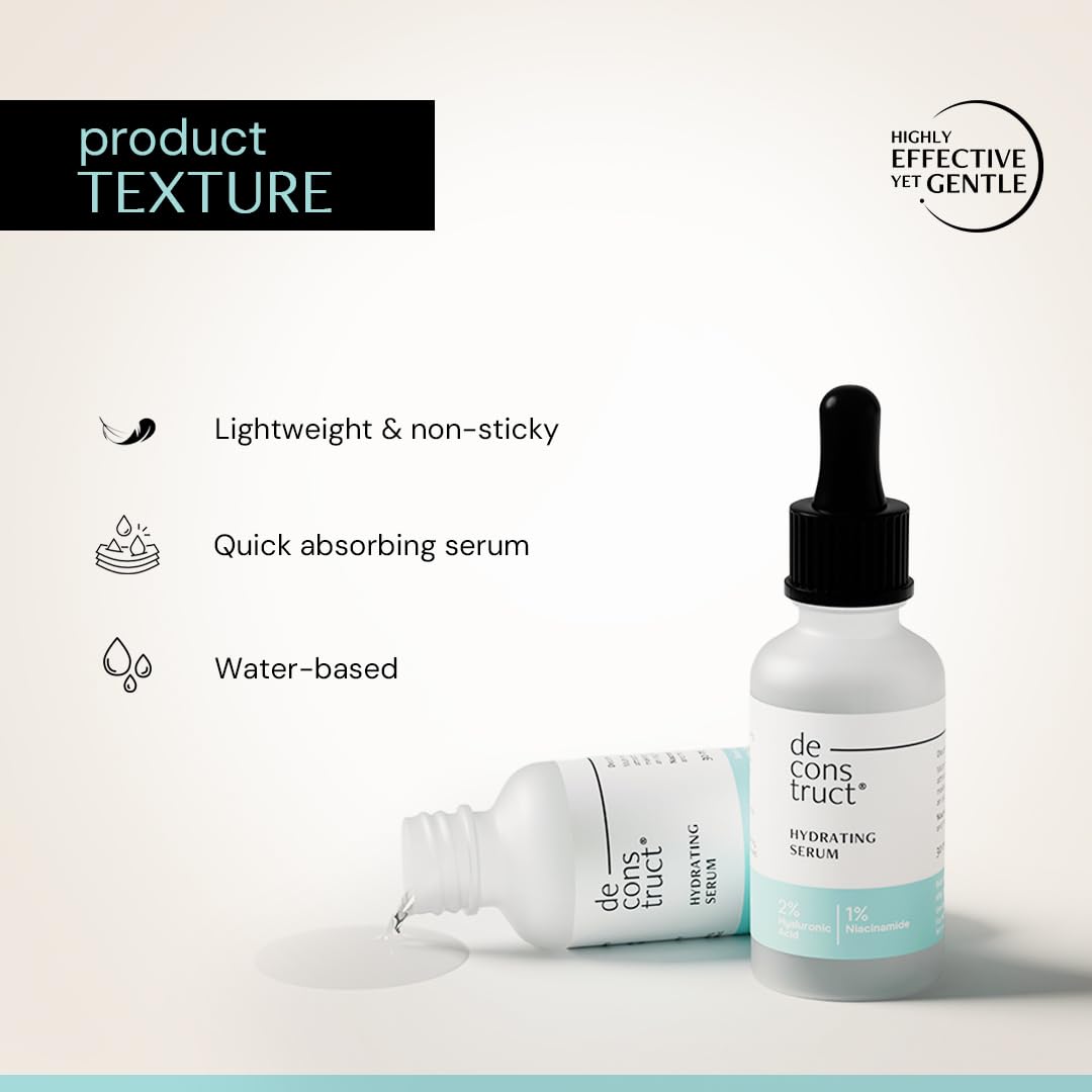 Deconstruct Hydrating Face Serum - 2% Hyaluronic Acid + 1% Niacinamide | Provides Intense Hydration | Face Serum For Oil-Free Moisturisation, Plump & Soft Skin | Beginner Friendly | 30ml