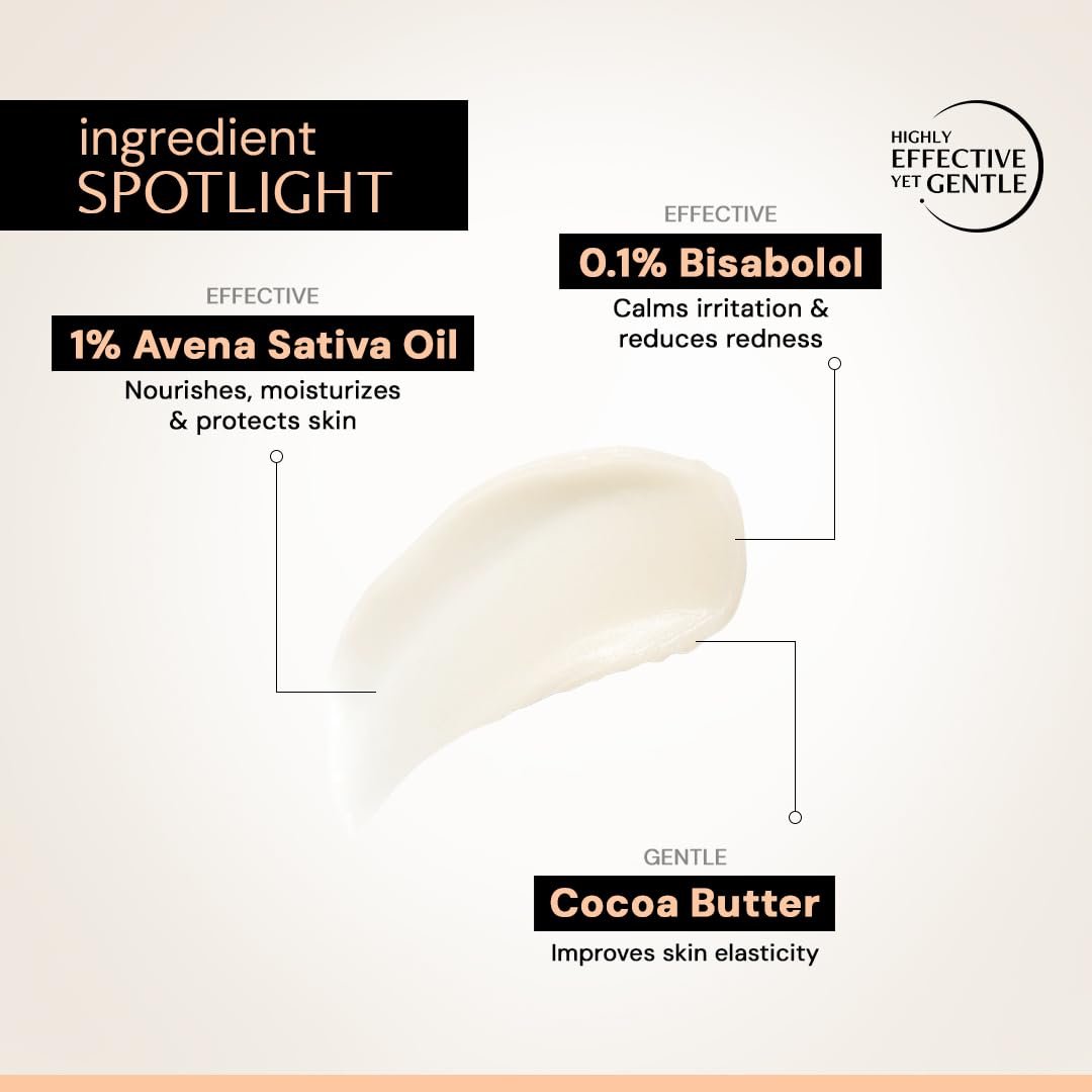 MOISTURISES & CALMS INFLAMED SKIN: The powerful duo formulated with 0.1% Bisabolol and 1% Avena Sativa Oil (oats oil that moisturises and calms inflamed skin)