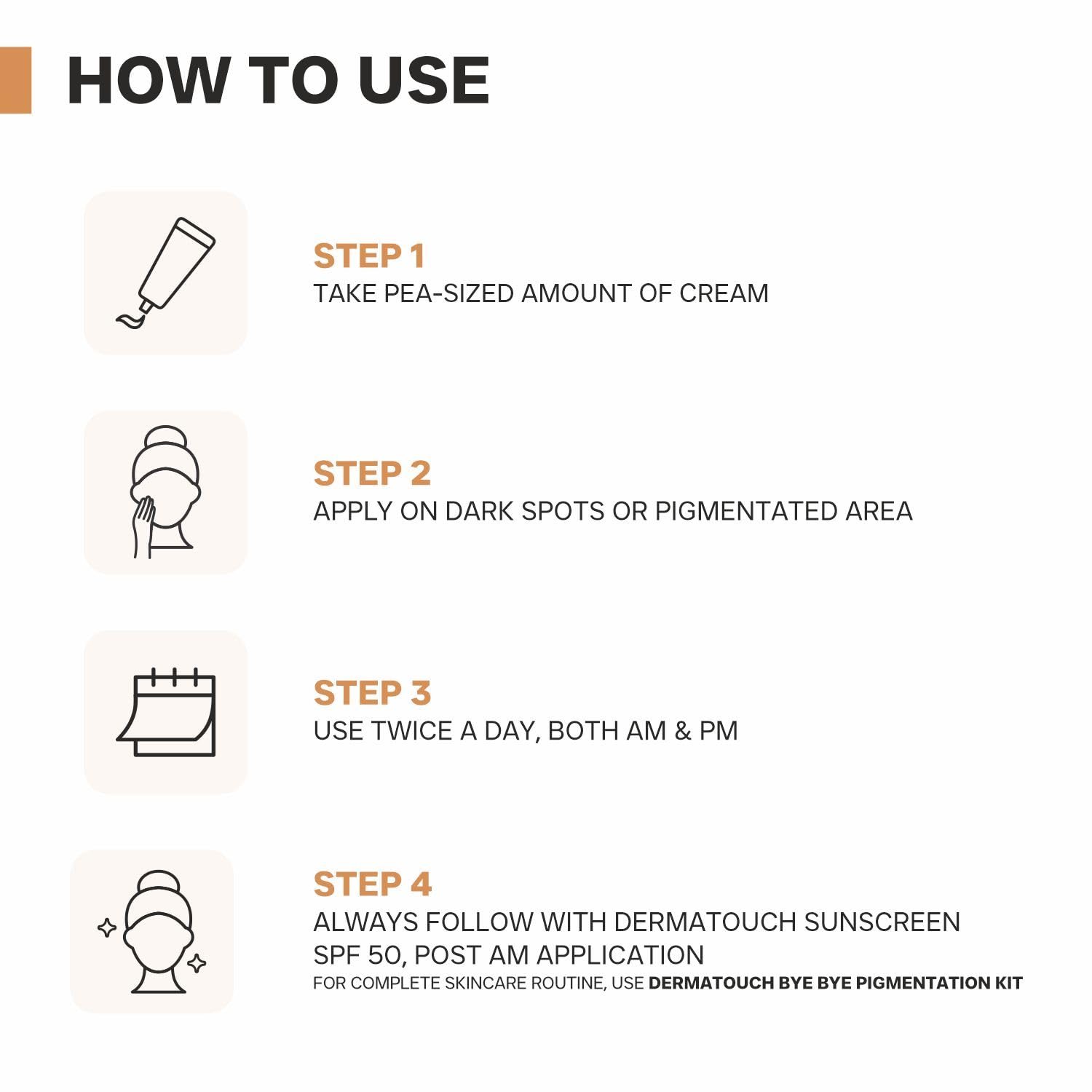 DERMATOUCH Bye Bye Pigmentation Cream, Anti Pigmentation Face Cream for Women/Men with Niacinamide, B-White, Lime Pearl, OA Hidroxitirosol LD & Tyrostat - 19g