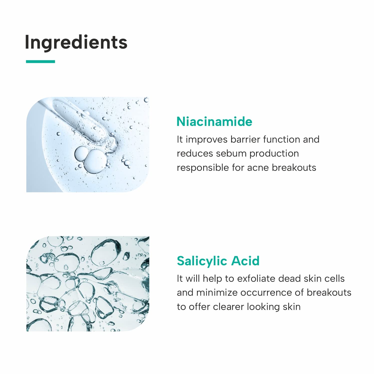 Dermatouch Salicylic Acid 2% Niacinamide 6% Anti-Acne Oil-Free Gel For Active Acne, Oil Balancing, Pore Tightening - 30G