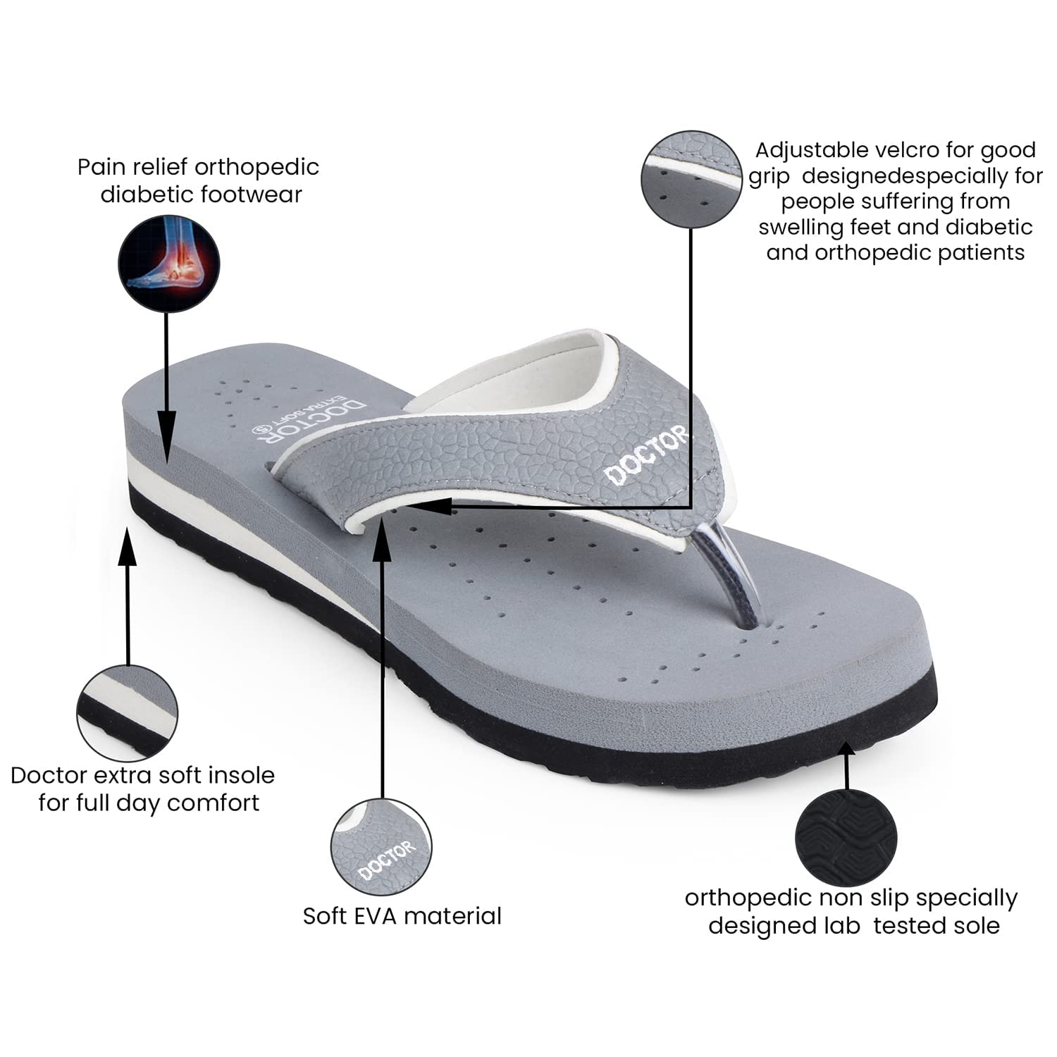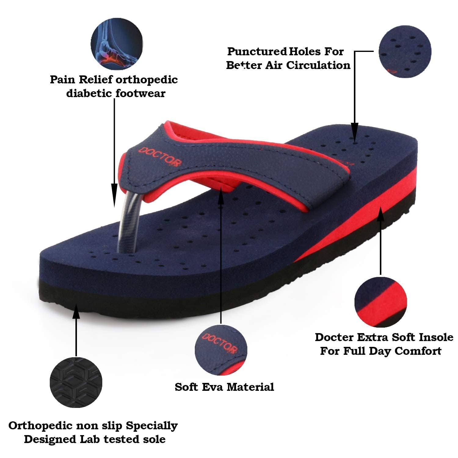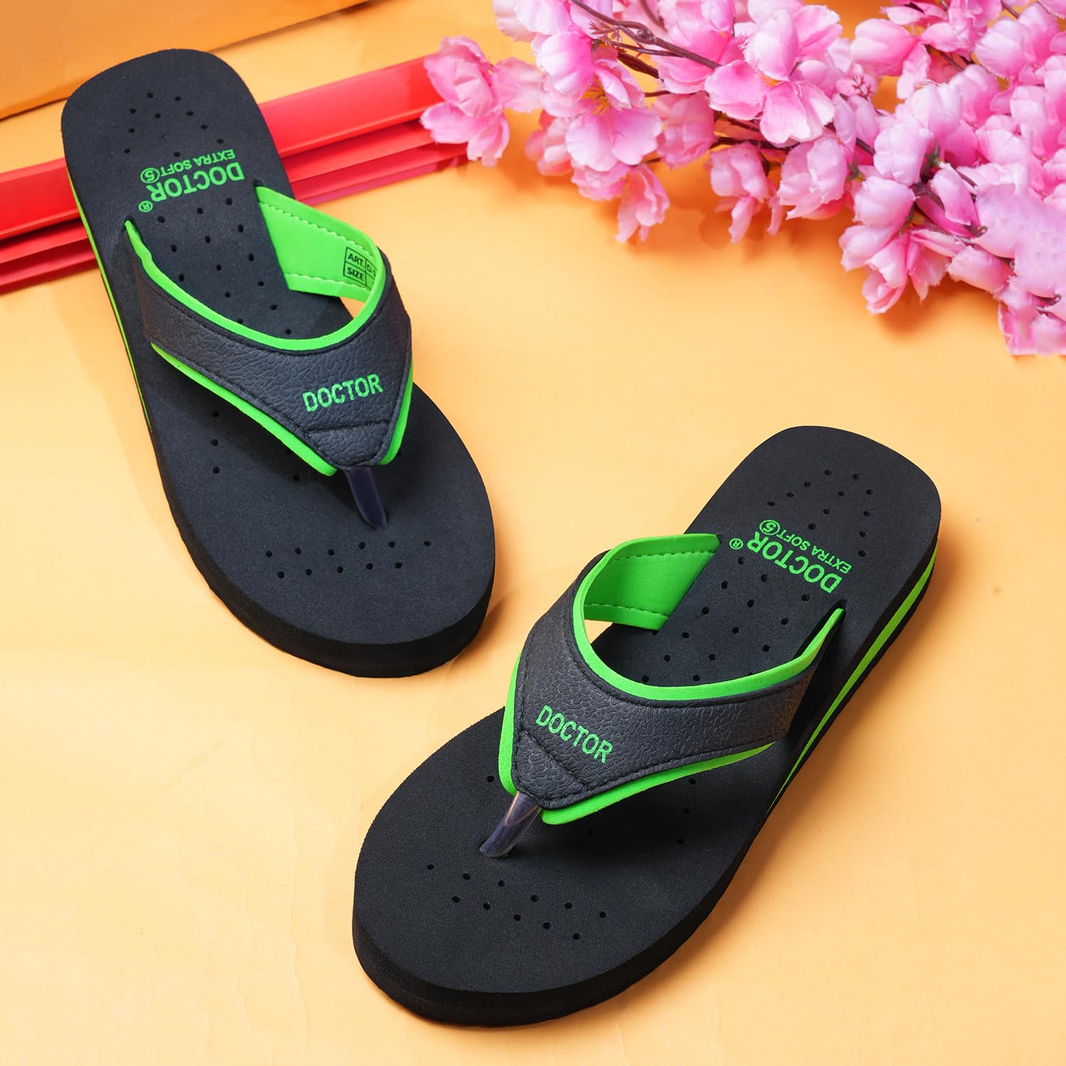 Add these wonderful Slippers (Flip-flop) to your Shoe Closet. Brought to you by DOCTOR EXTRA SOFT, this Slipper is not only colorful and highly attractive to look at, but also extremely Comfortable to wear. Now, you can now keep your feet comfortable with this pair of doctor sole footwear for women that have been skillfully crafted to provide optimum support to your ailing feet. It is lightweight and has been ergonomically designed to support and soothe feet suffering from orthopedic problems. These Chappal are preventive footwear for Diabetic Foot problems, relieves heel arch and Ankle Pains. Soft in-sole, Flexible sole for better walking comfort Extra Soft and Comfortable bottom for Heel Comfort. It is highly recommended for general foot Pain & Discomfort Heel Pain, Arch Pain Plantar Fasciitis, Diabetes, Back Pain, and Blood Circulation. Doctor Slippers for Women are also mostly used by Pregnant women and women suffering with Leg, Knee, Foot and Ankle Pain and are also known as Doctor Slipper for Women Soft, Relax Slippers for Women, Patient Slippers, and Sugar Patient Slippers for Women.