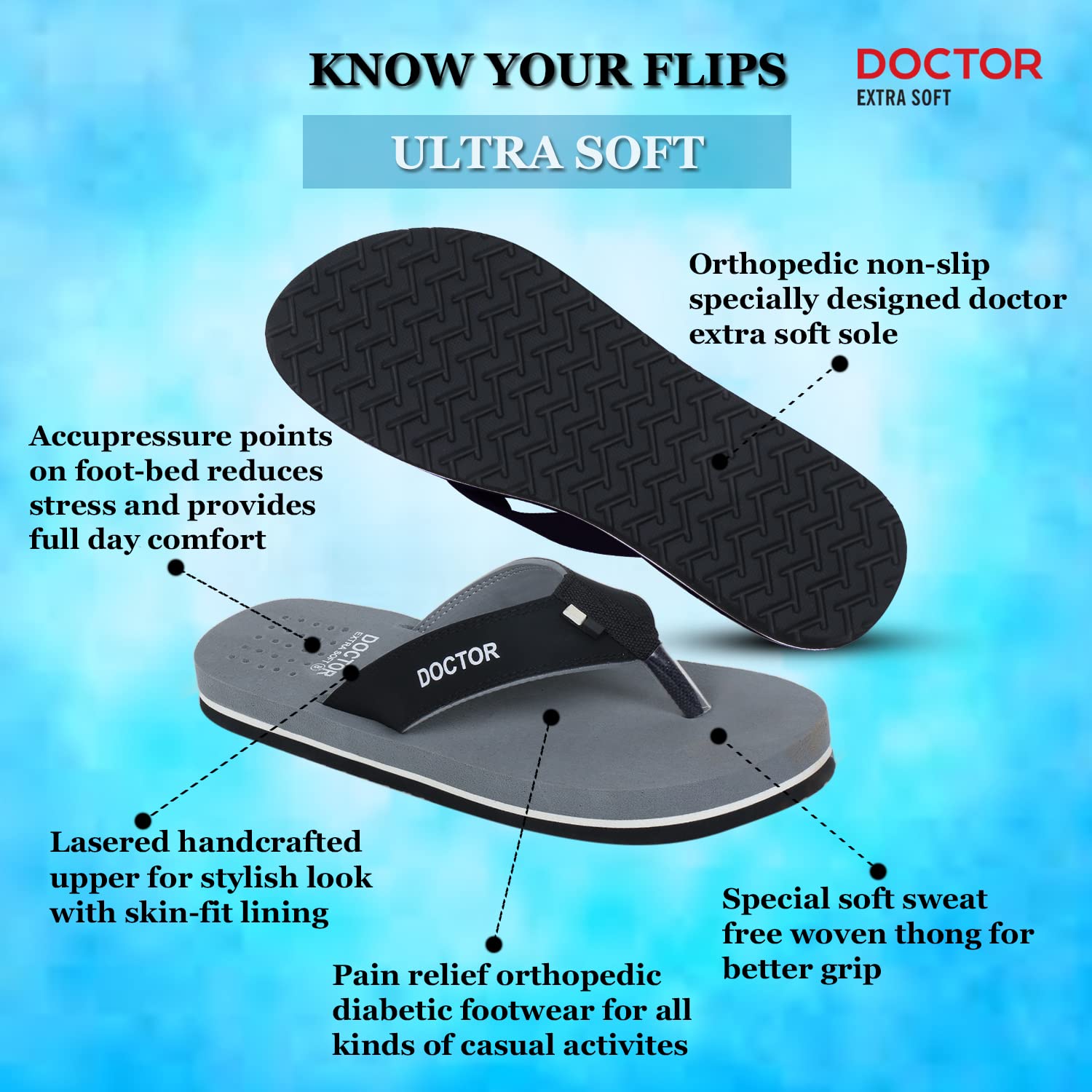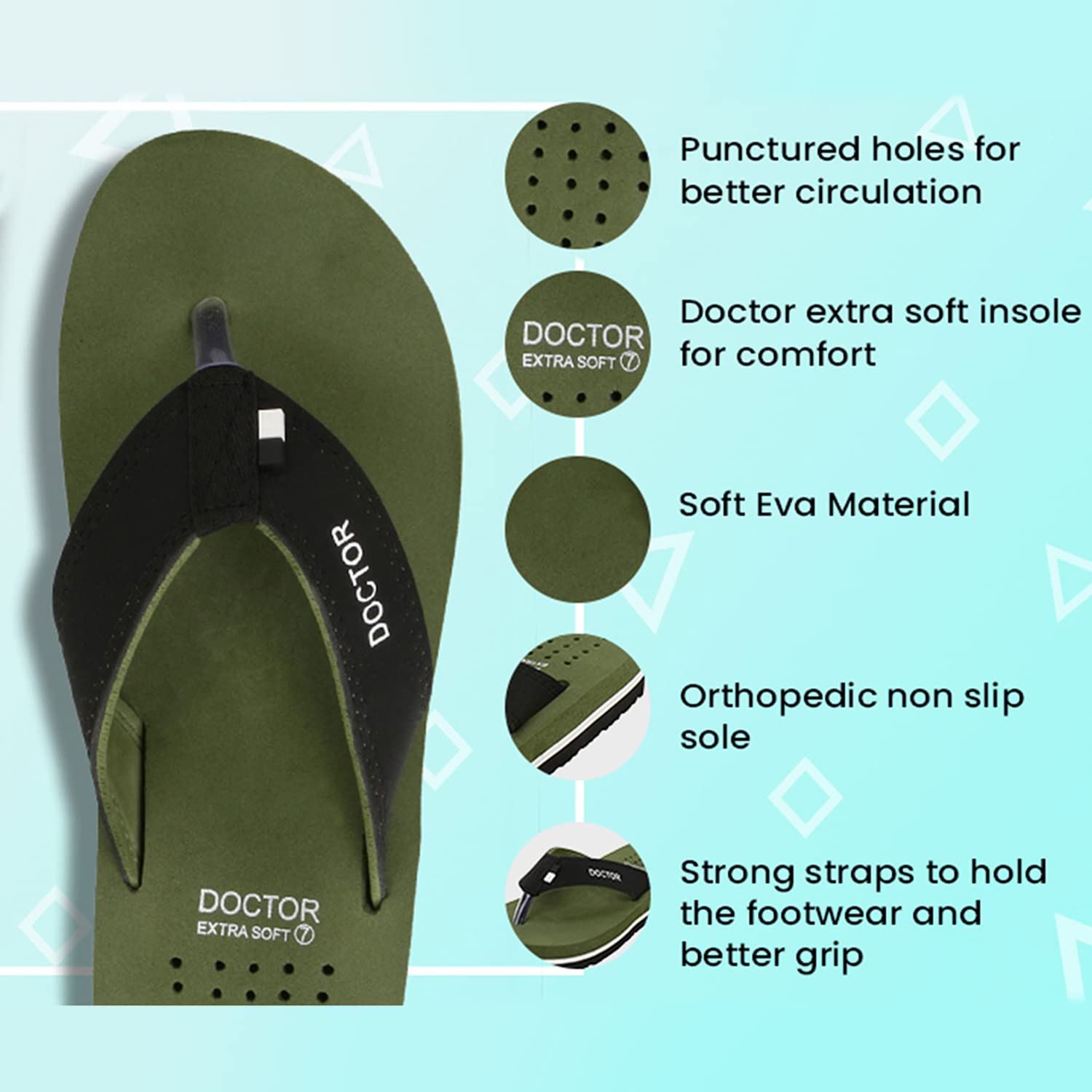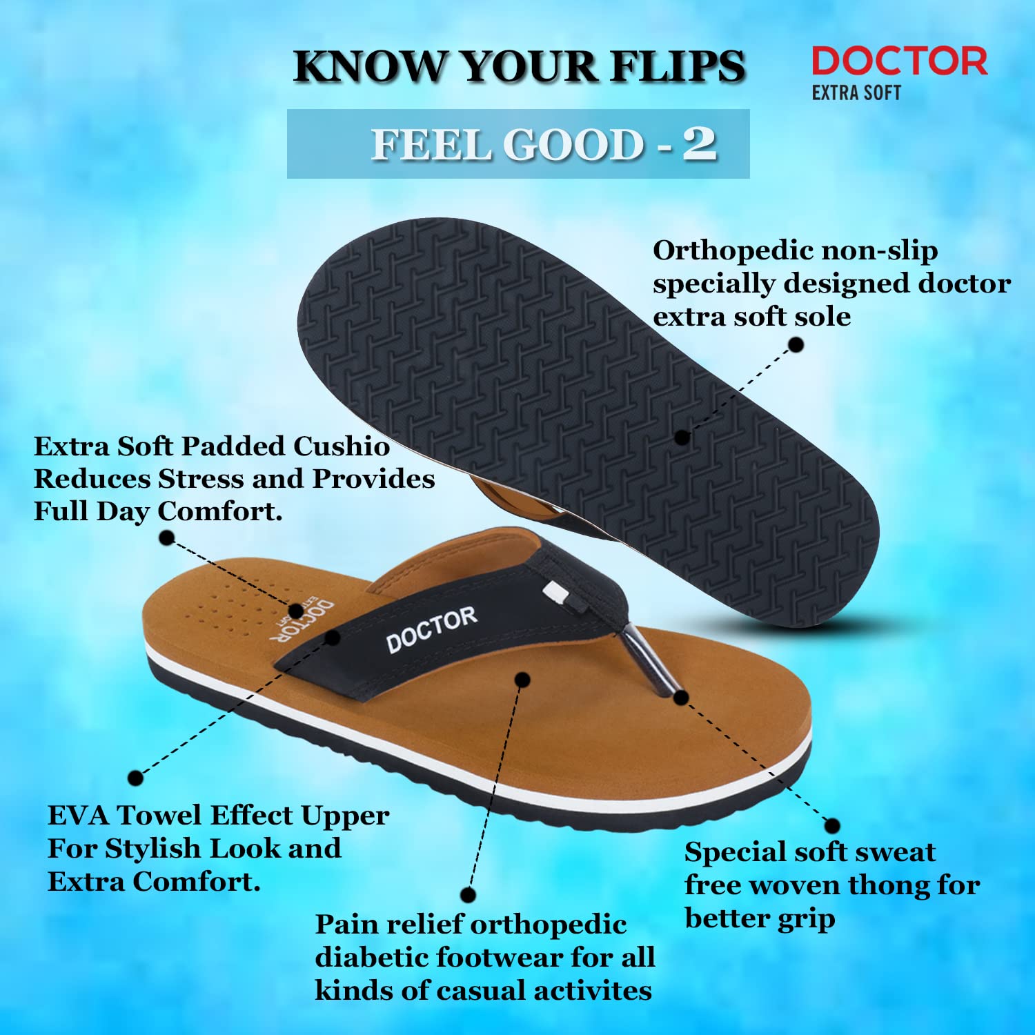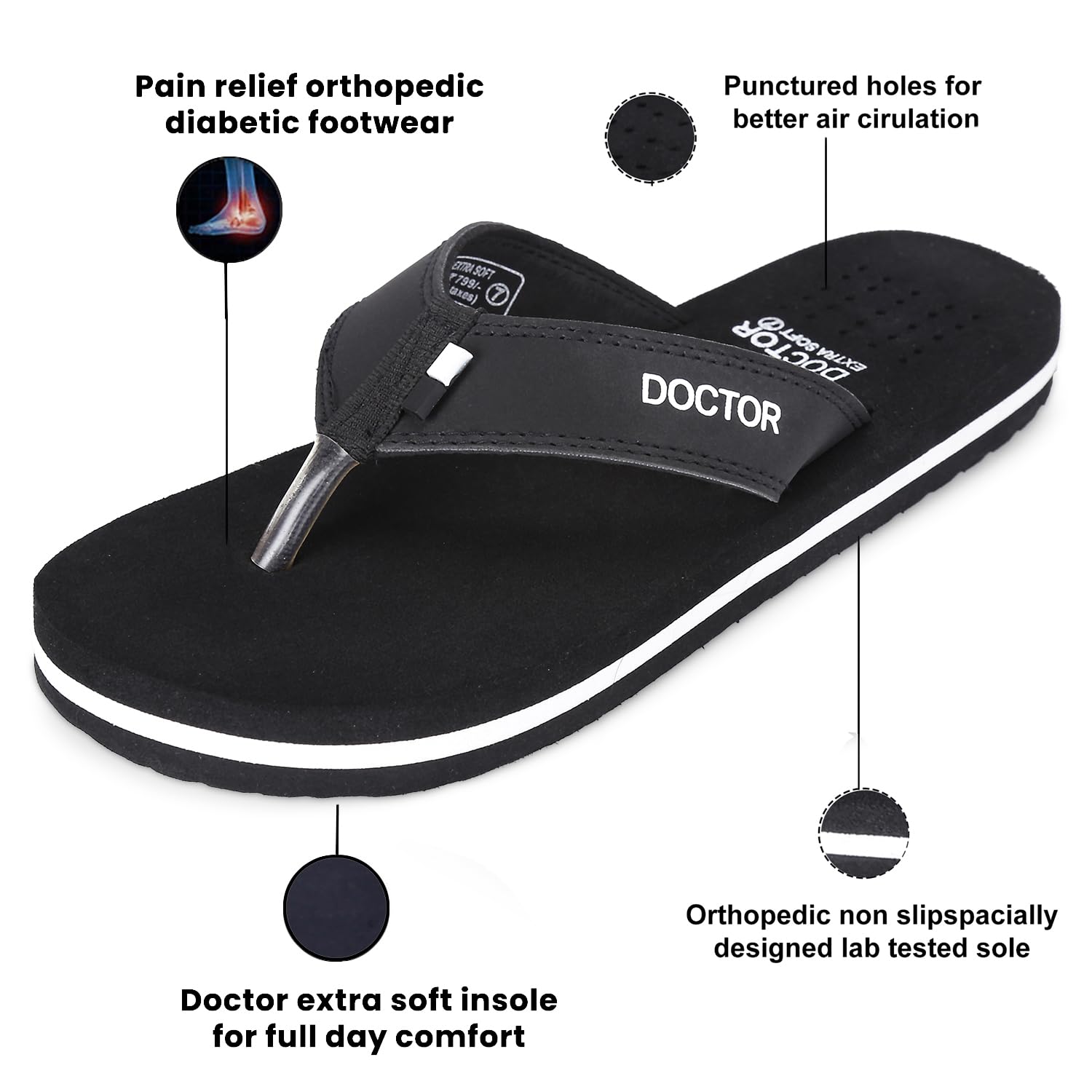 DIABETIC AND ORTHOPEDIC:: - Extra Soft, Padded, Comfortable and Cushioned Foot-Bed Enhances Comfort to the Feet.. Doctor Extra Soft Slipper Provides You Better Walking Comfort and also makes you’re Walking Life easy and effortlessly..; ANTI-SKID AND ADJUSTABLE VELCRO:: - Good Rubber Grip Enables You to Use These Slippers on Wet Floors, Tiles, Marbles, Etc.. This Rubber Sole Is Long Lasting and Provides Uninterrupted Daily Usage..