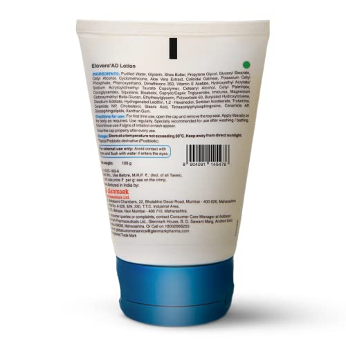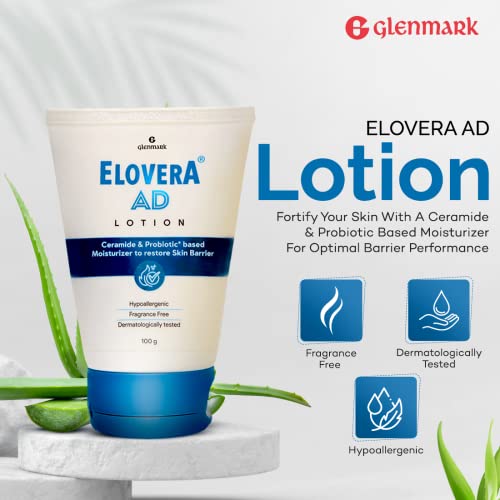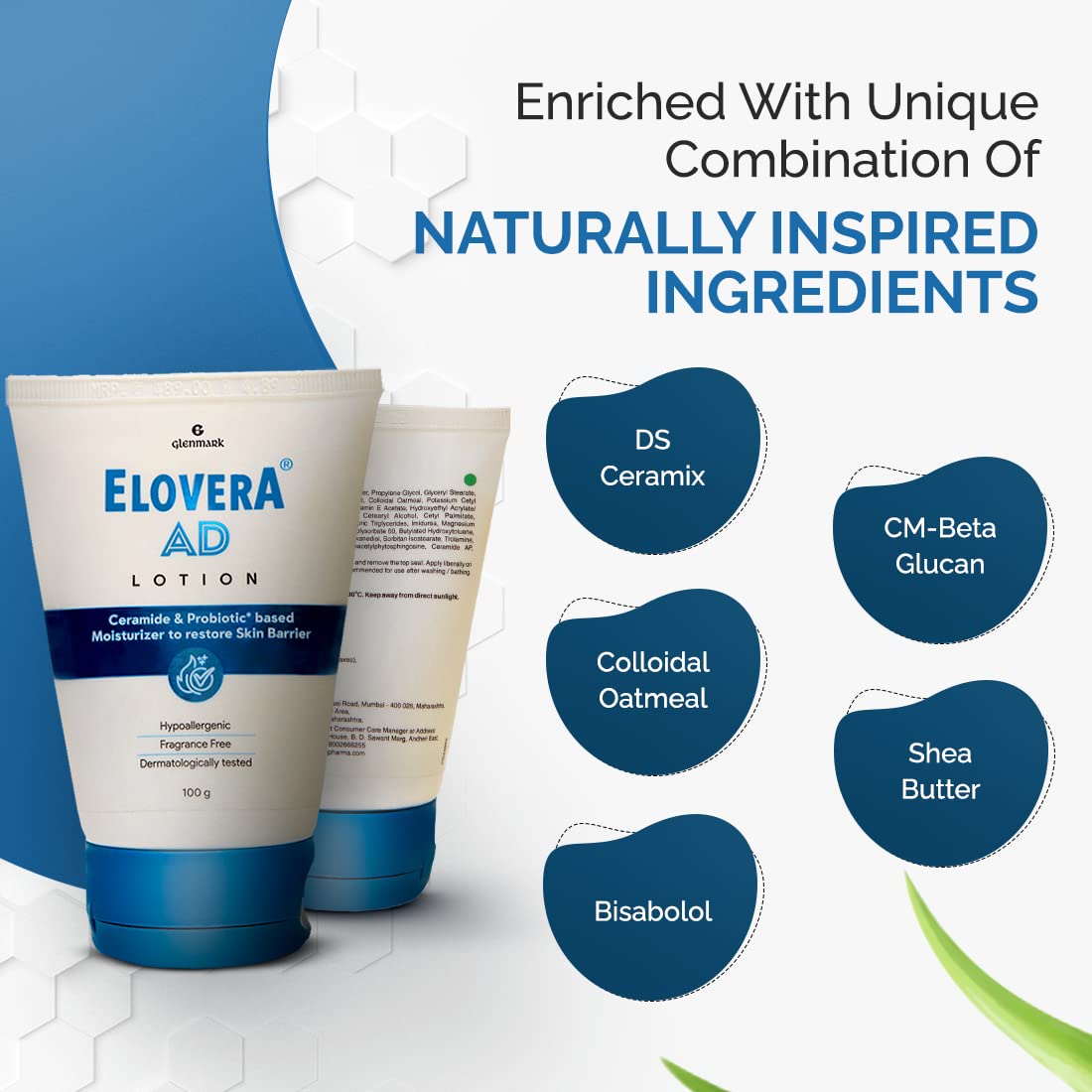 Elovera AD Moisturising Lotion 100ml | For Dry Skin | with Ceramides & Probiotic| Nourishes and Restores Skin Barrier | Dermatologically Tested | Hypoallergenic