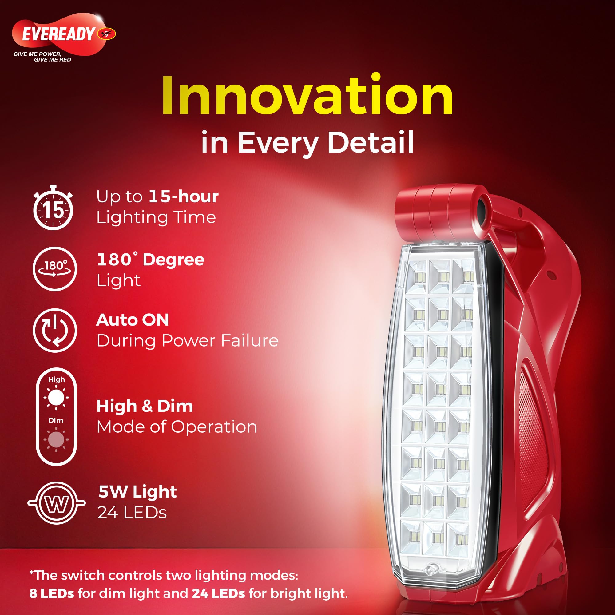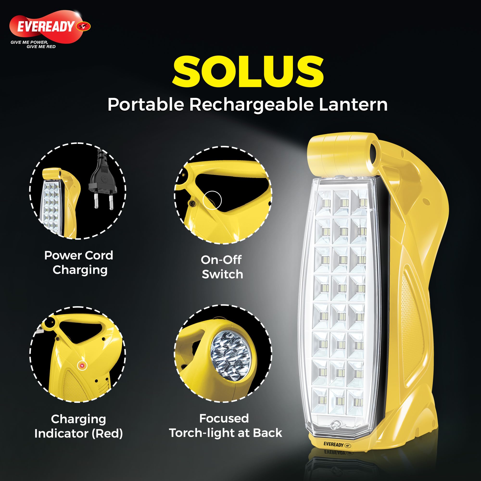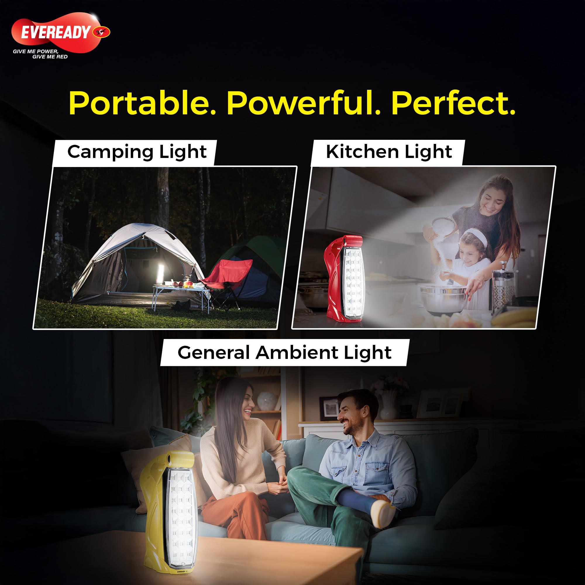 2-IN-1 LANTERN WITH FOCUSED TORCH: HL52 Features a dual-light design combining a 180° LED lantern with 24 LEDs and a focused rear torch with 9 LEDs. Offers wide area lighting and targeted beam from a single device, making it useful for home, outdoor, or emergency use.