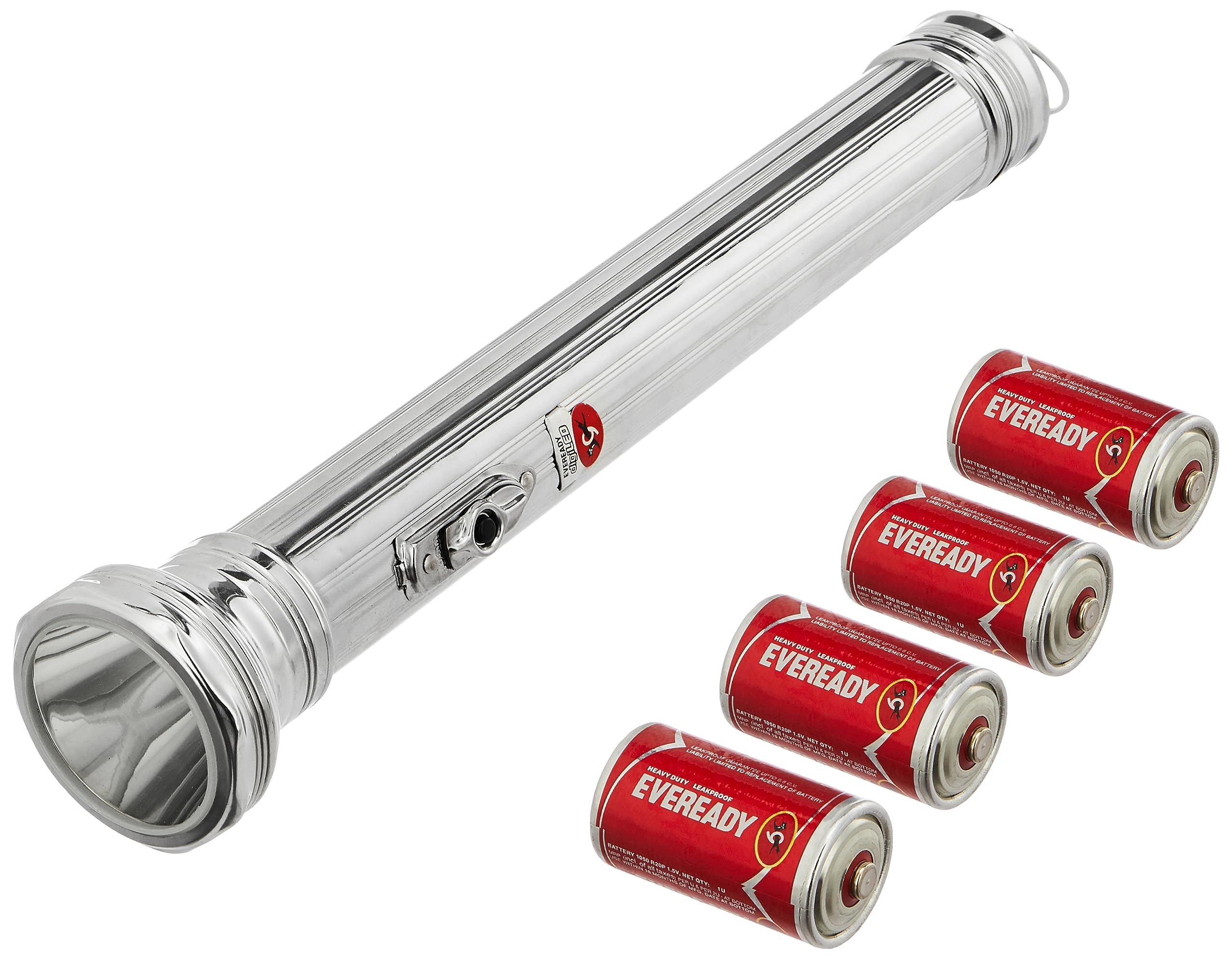TRIPLE BATTERY CONFIGURATION: This torch runs on four D size batteries, delivering stable power for extended use. This system ensures consistent performance and longer runtime, making it ideal for regular and emergency use. To make things easier, all required batteries are included free in the pack, eliminating the need for a separate purchase.
