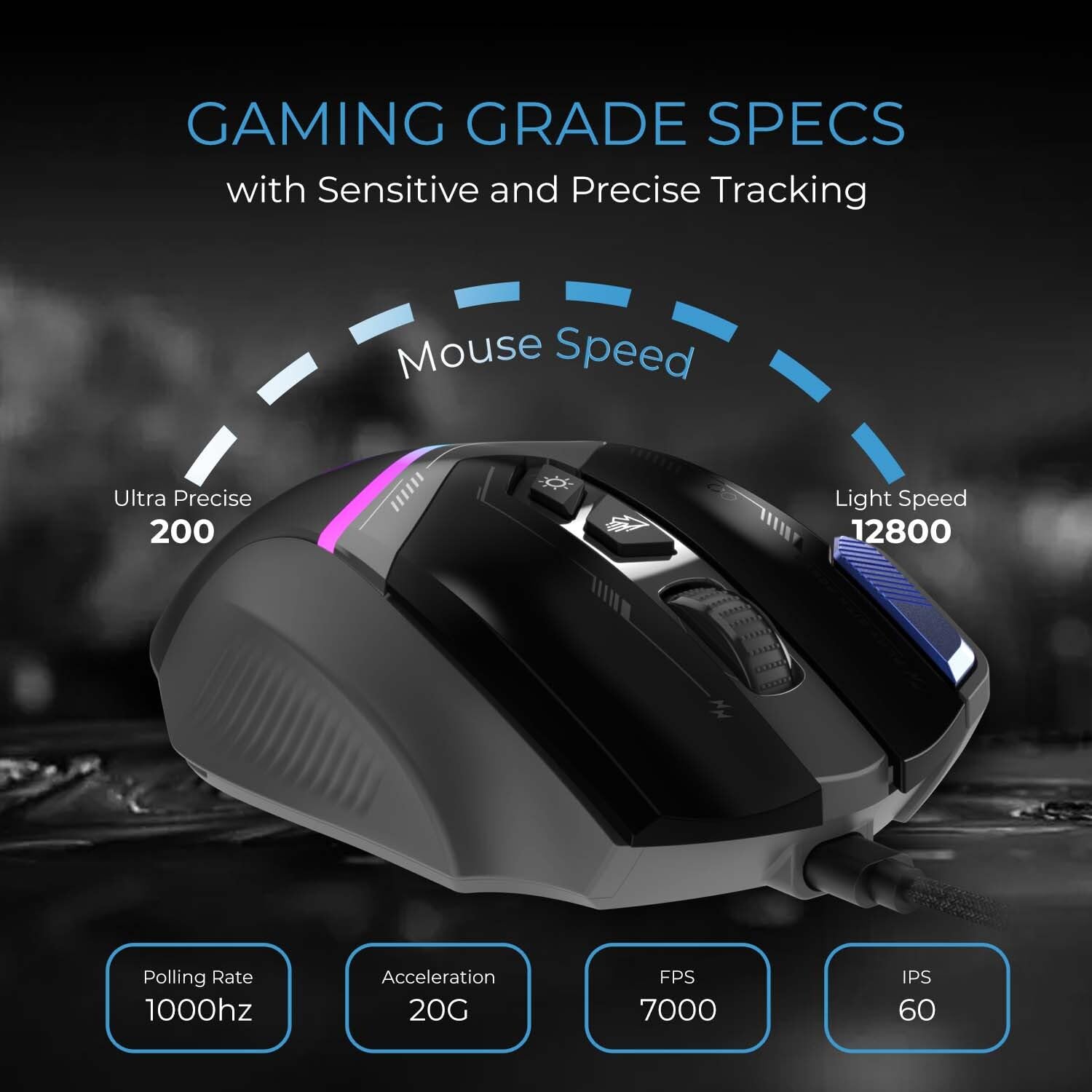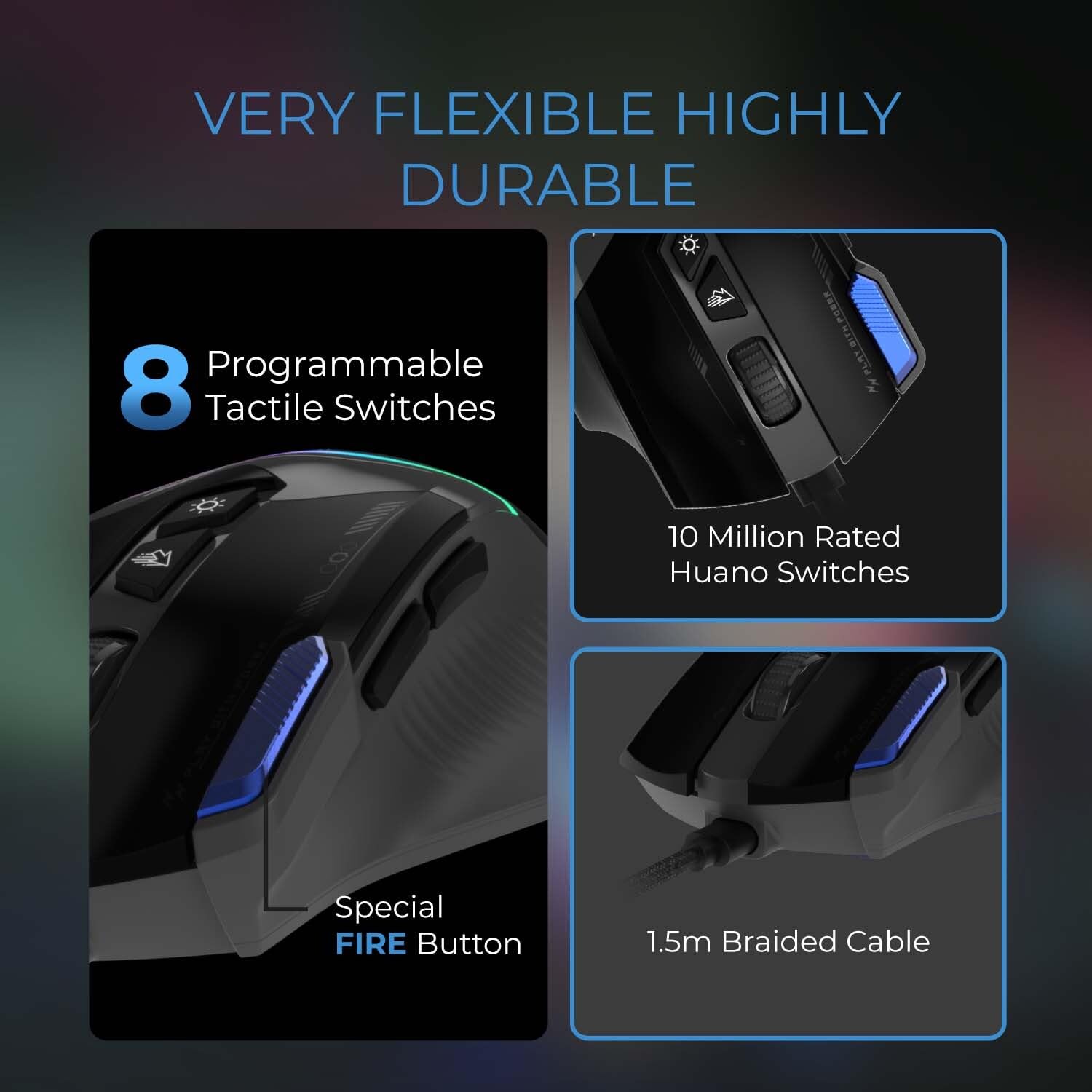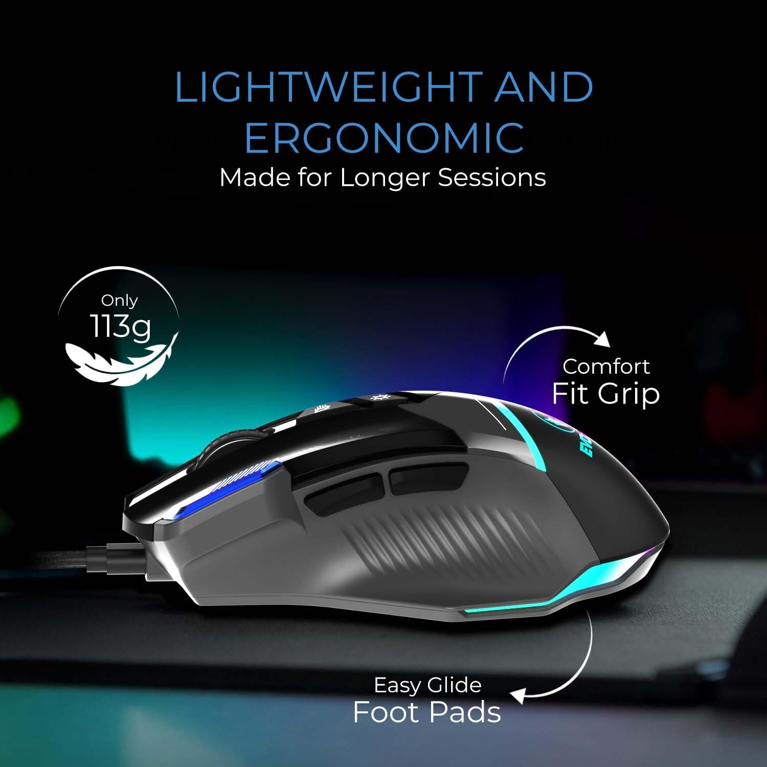 EvoFox Blaze Ultra Value 8 Button Programmable Gaming Mouse with 1000Hz Polling Rate | Gaming Grade DPI 200 to 12800 | Ultra-Responsive 7000fps | RGB Lights with Music sync Mode | Windows Software
