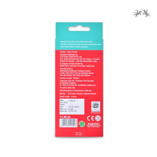 Faber-Castell Triangular Colour Pencil Set – Pack of 24 | Colour Pencils for Kids Aged 6-12 | Ergonomic Pencil Colour Set for School & Art Projects