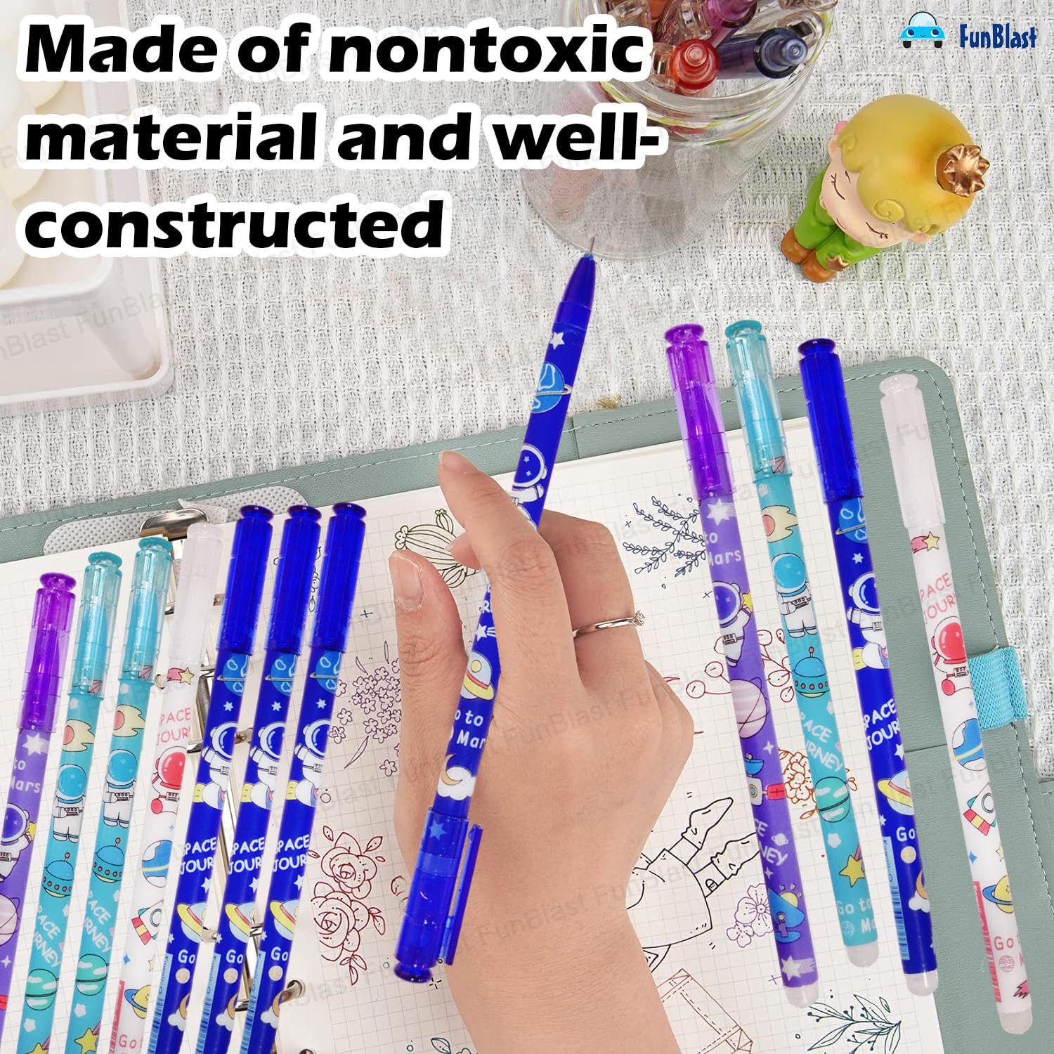 Best Gel Pens for Smooth Writing – FunBlast Space journey gel Pen is lightweight, slim design & easy grip which makes it perfect for long hours of writing.