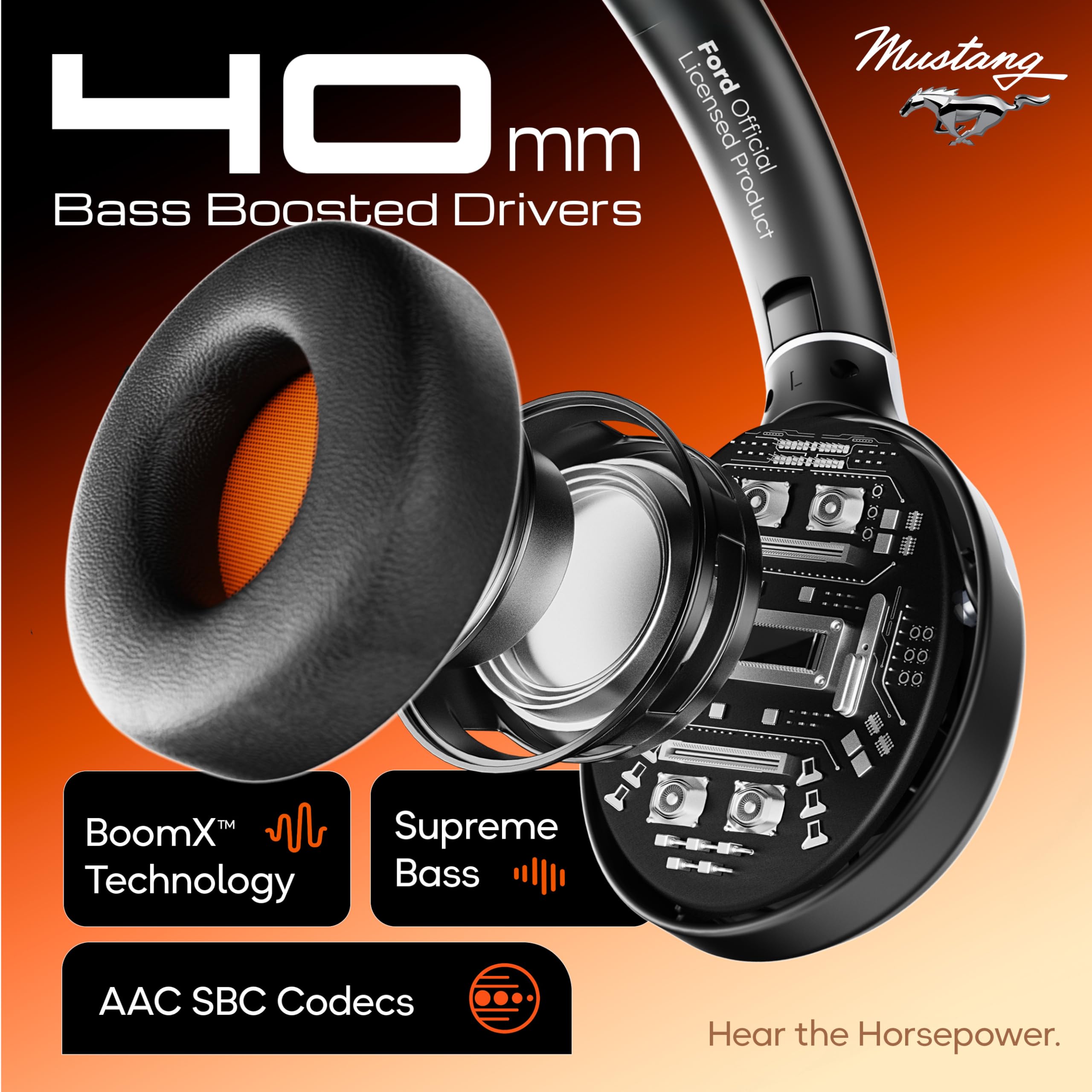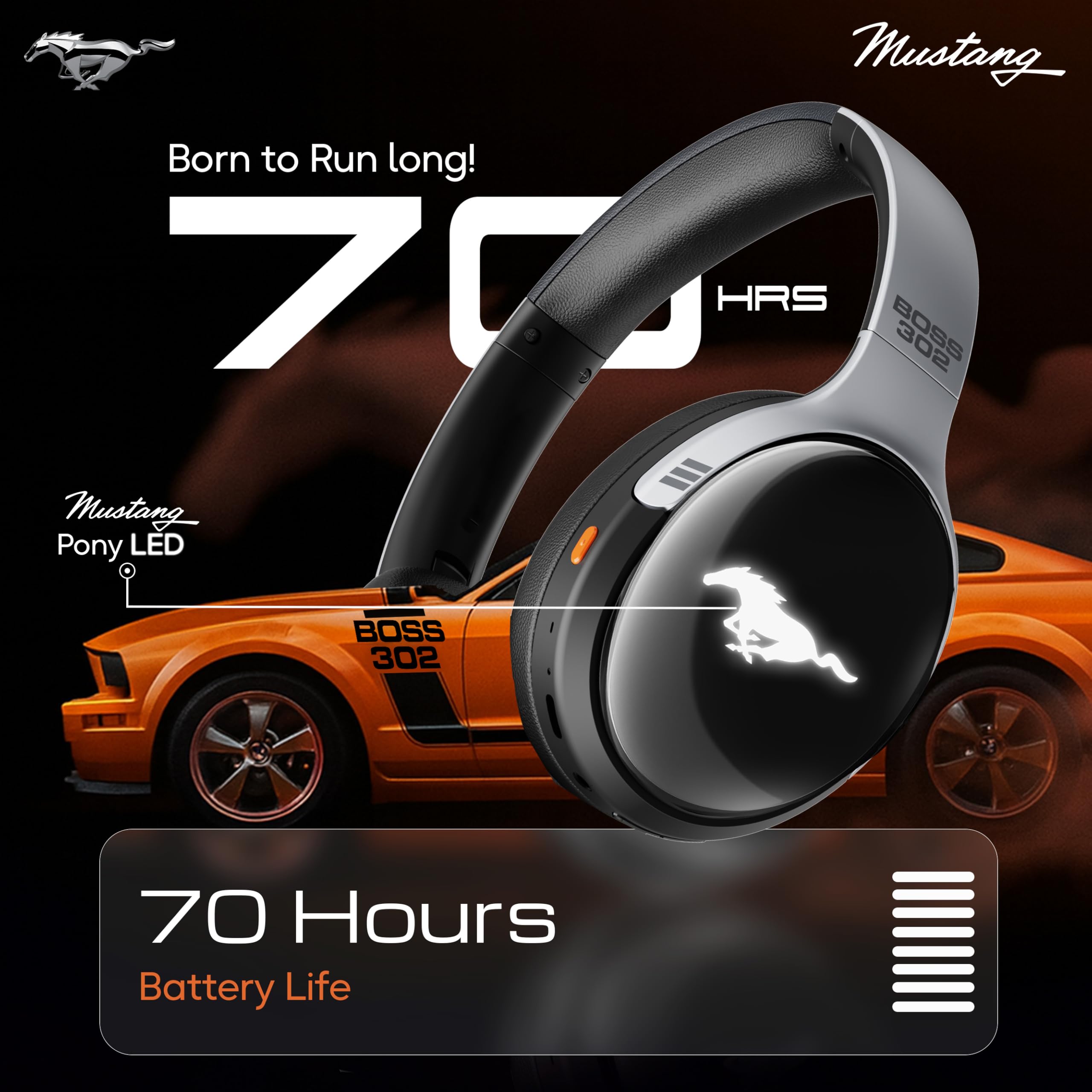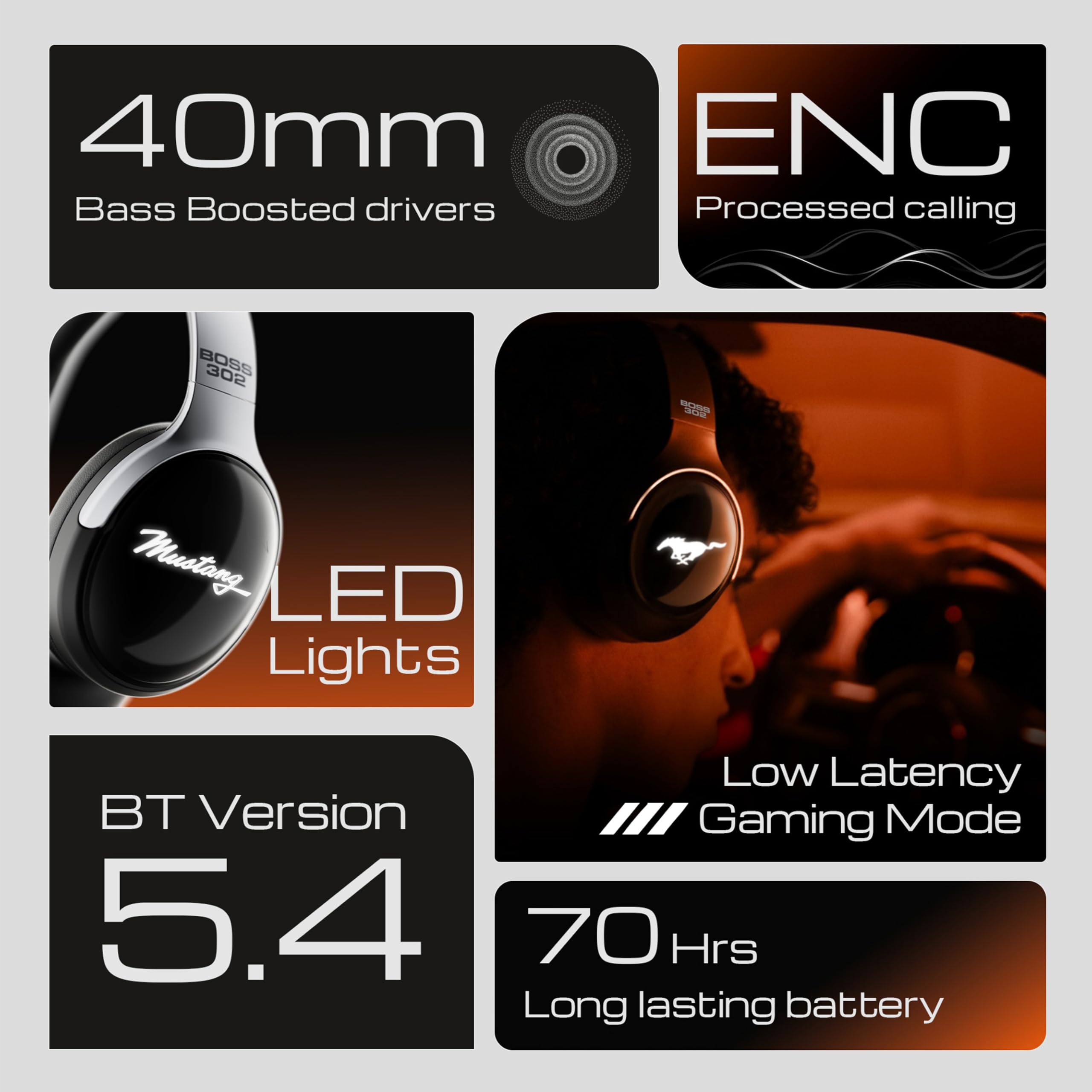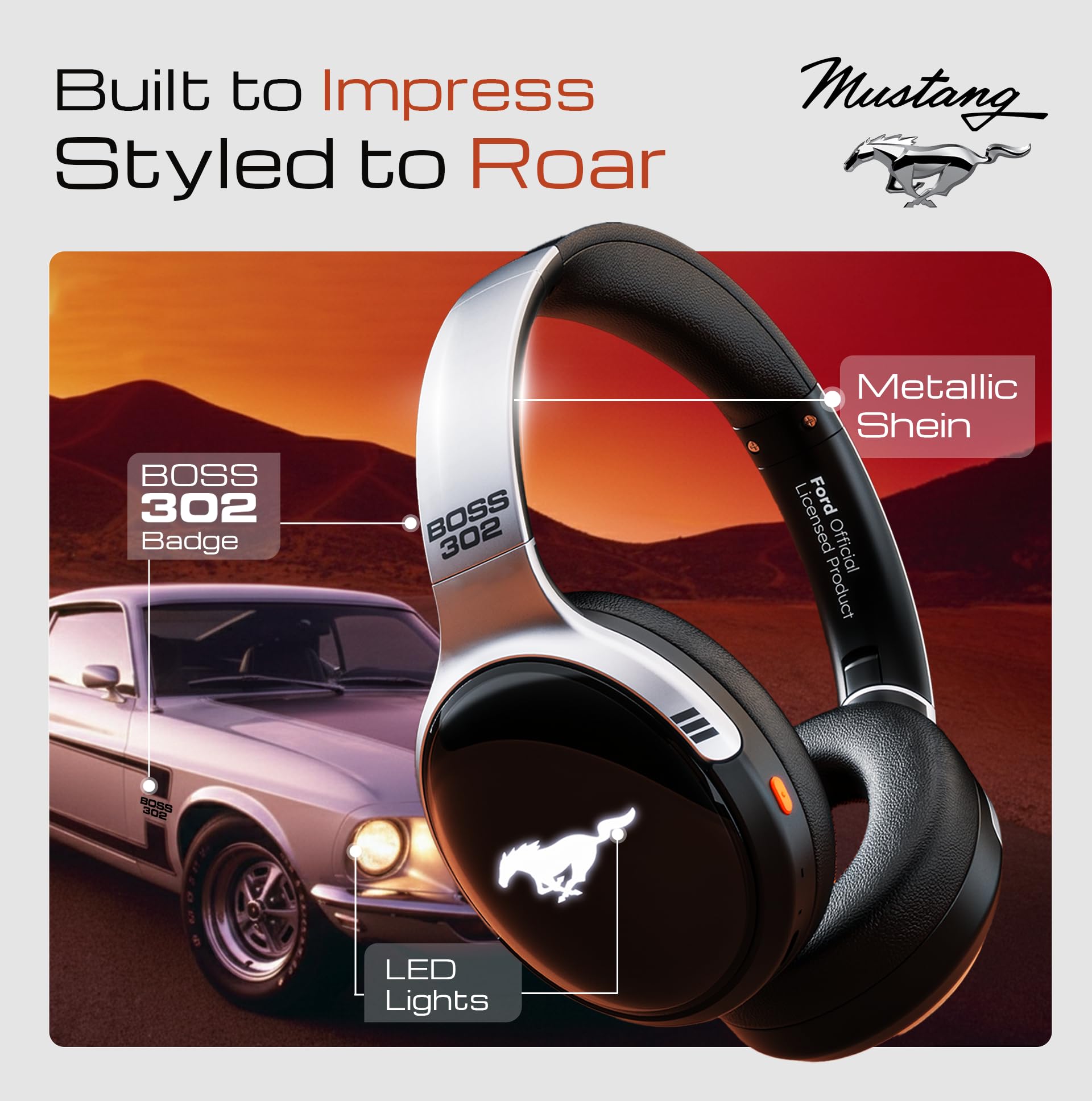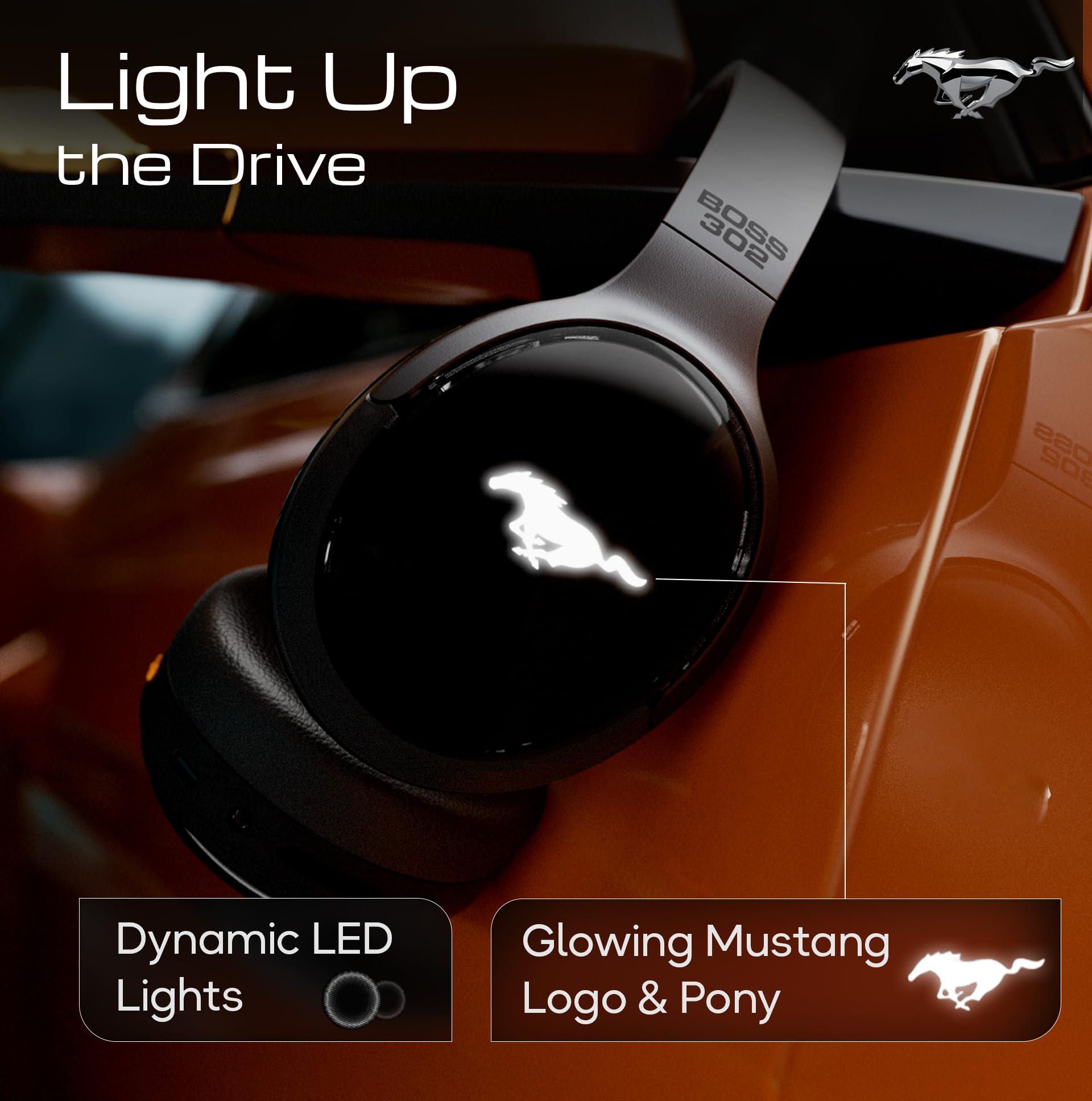 GOBOULT Newly Launched Mustang Thunder Bluetooth Headphones with Upto 70H Playtime, Brightness LED Modes, 40mm Driver, Zen ENC Mic, Type-C Fast Charging, 4EQ Mode, Over Ear Wireless Headphone with Mic