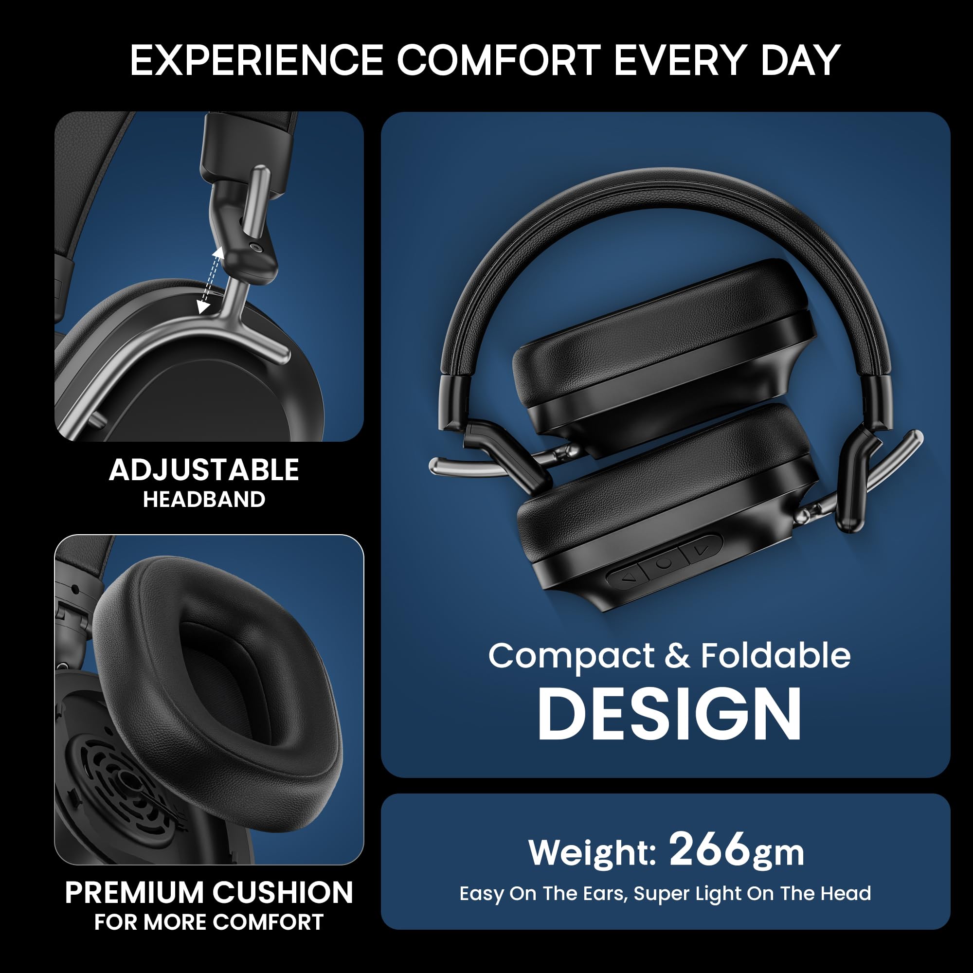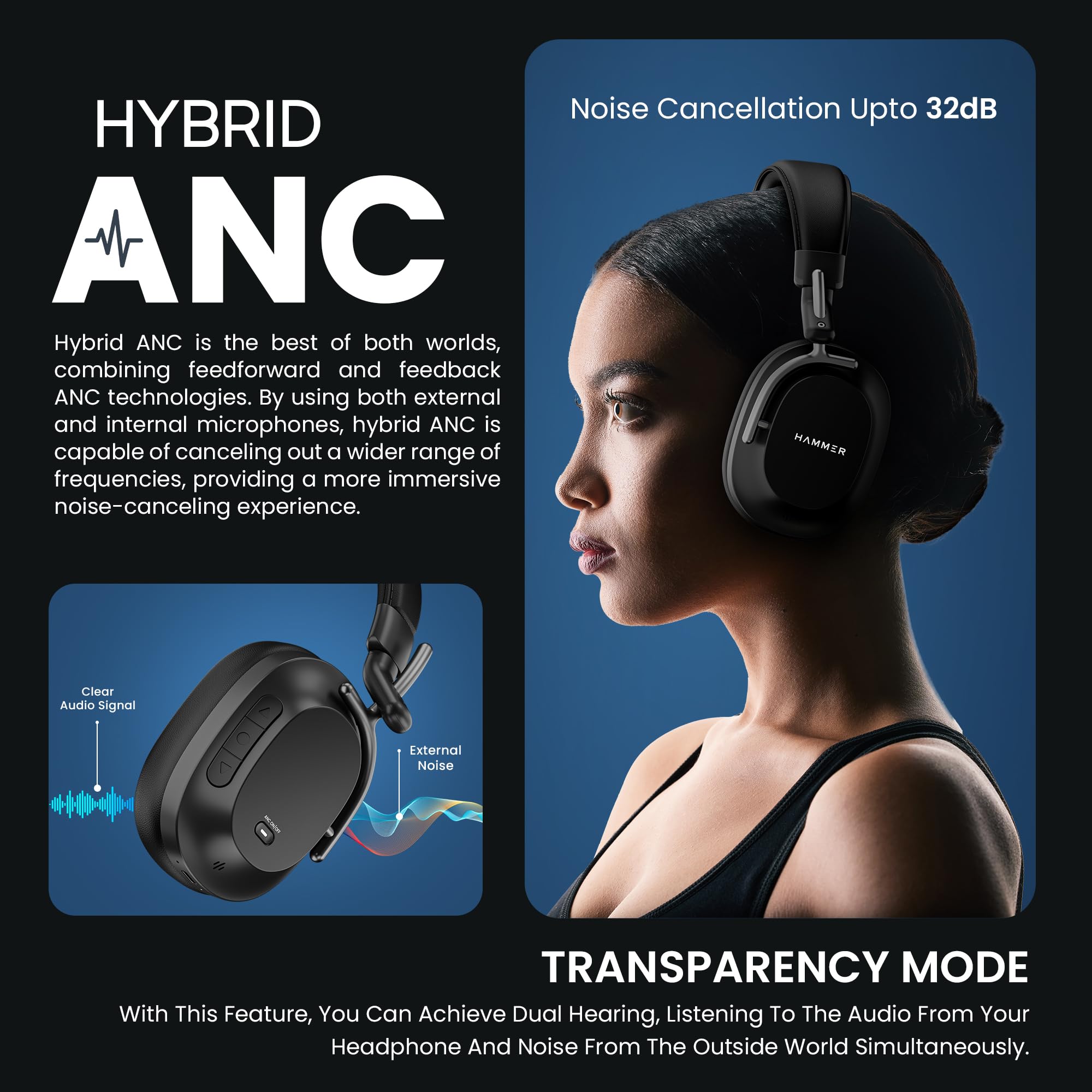 Bluetooth Headphones with Advanced Features: Experience superior sound quality with 40mm drivers in these headphones bluetooth. Boasting Hybrid ANC for uninterrupted listening, they offer a quick charge capability ensuring 300 min playtime from just a 10-minute charge