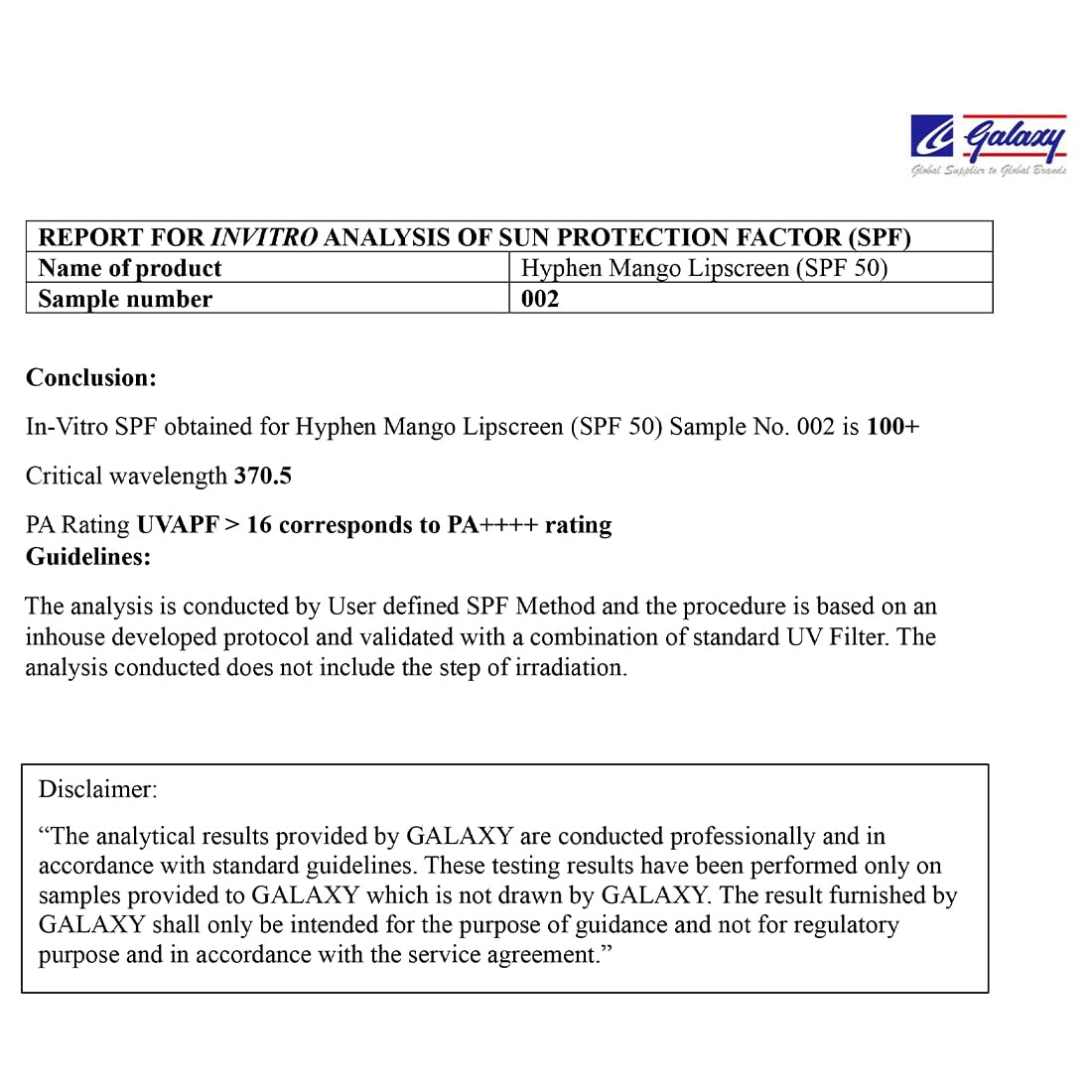 Hyphen Mango Lip Balm SPF 50 PA++++ | 2% Kojic Acid Brightening LipBalm for Dark & Pigmented Lips | 1% Vitamin E & Vitamin C | Moisturizing SPF LipBalm for Dry Lips - 10 g