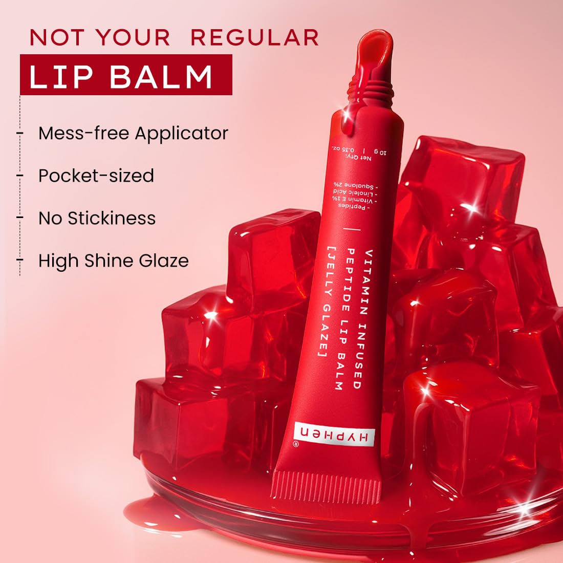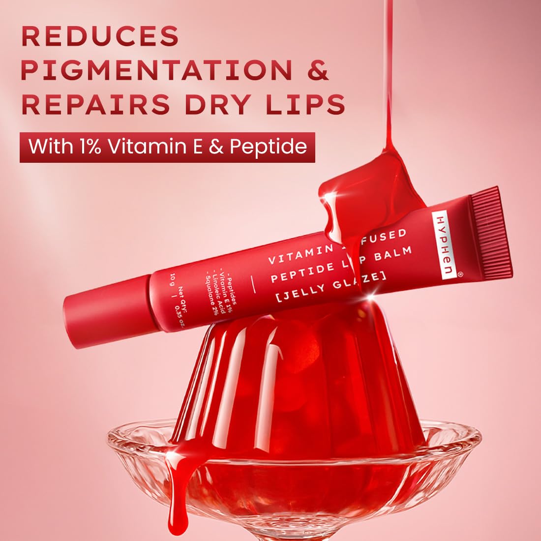 Hyphen Tinted Lip Balm | Brightens & Reduces Dark Lips & Pigmentation | 1% Vitamin E, Peptide & 2% Squalane | Winter Lip Care| 24H Moisturization for Dry & Chapped Lips | Jelly Glaze (Red Shade)- 10g