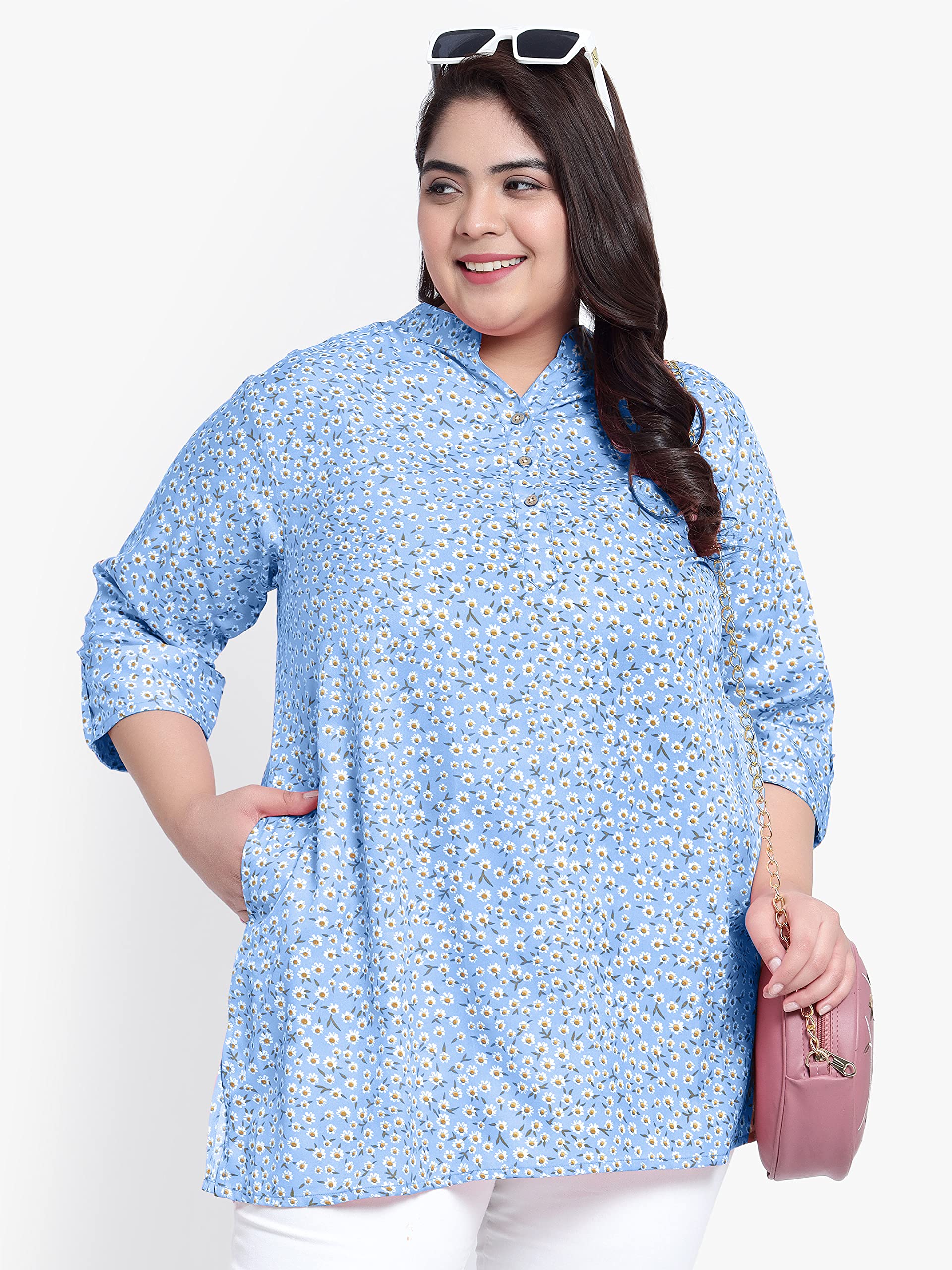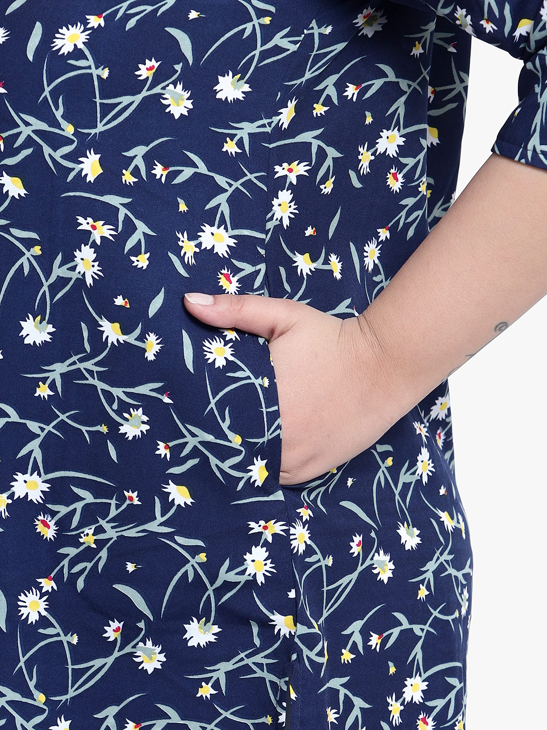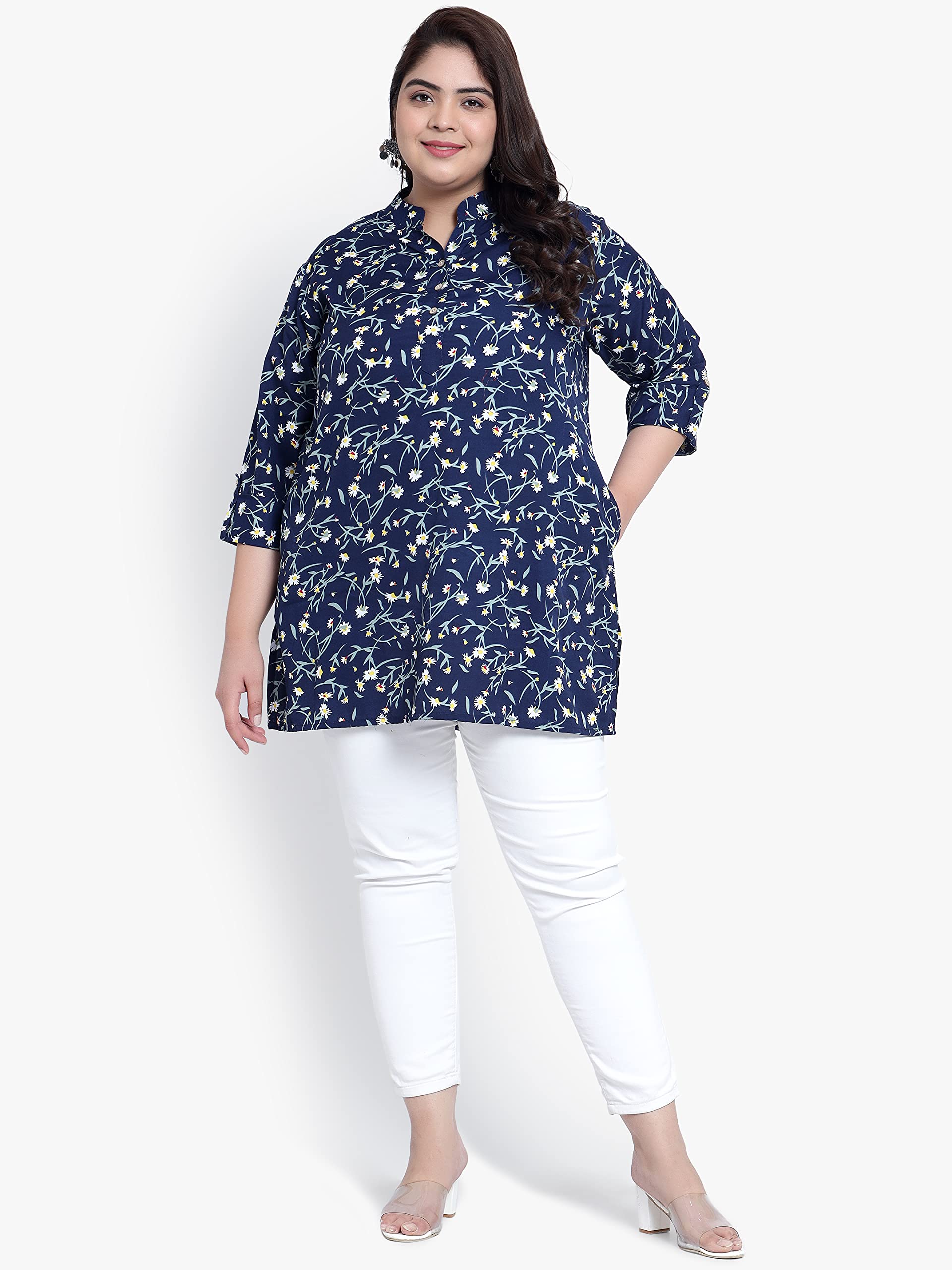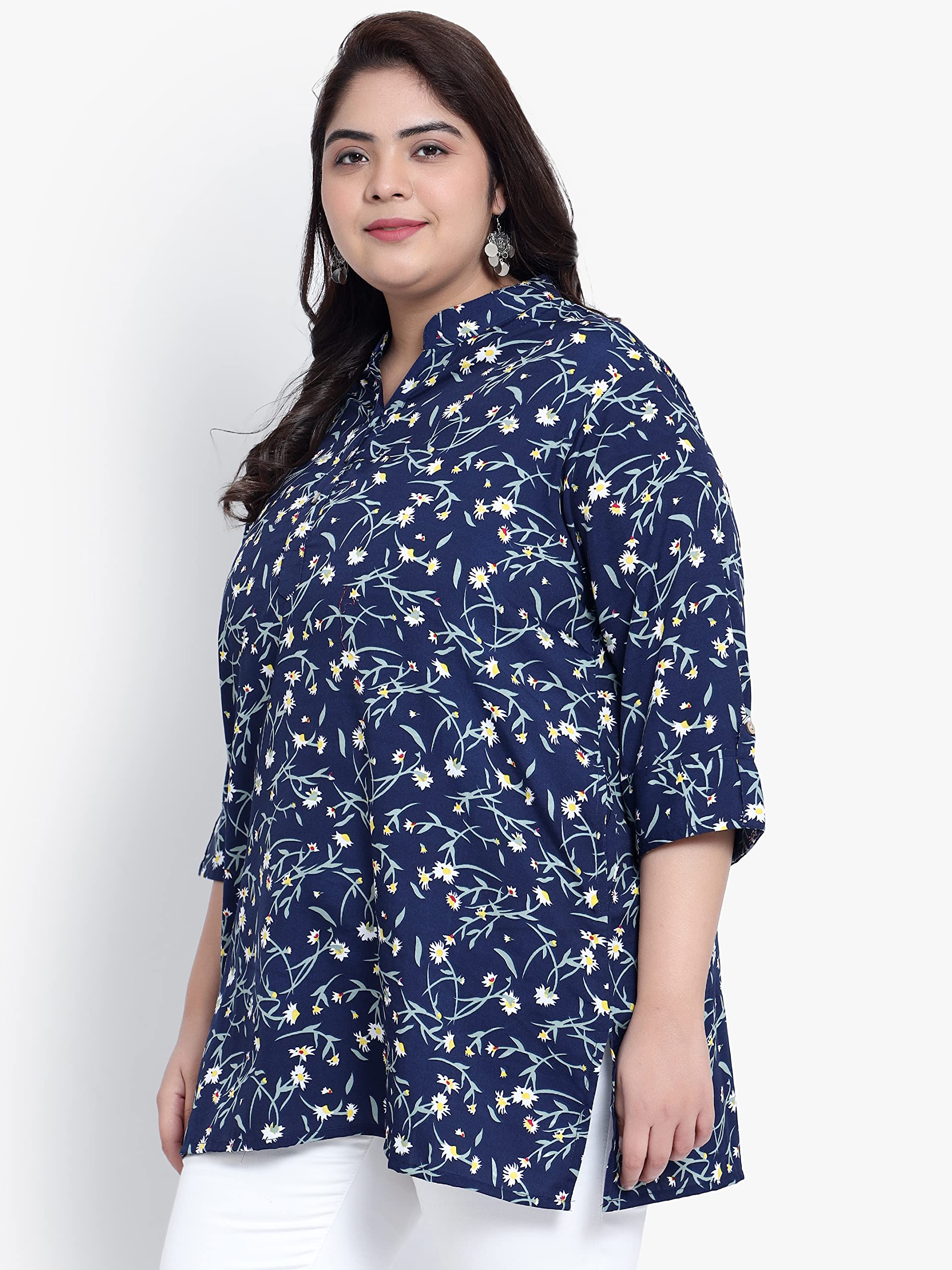 Indietoga Women's Plus Size Floral Printed Casual Long Tunic Tops (2XL to 7XL)