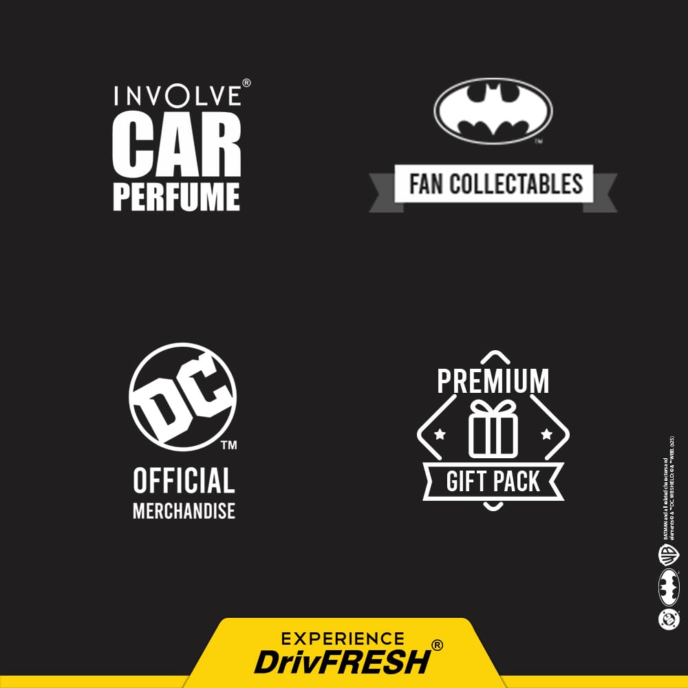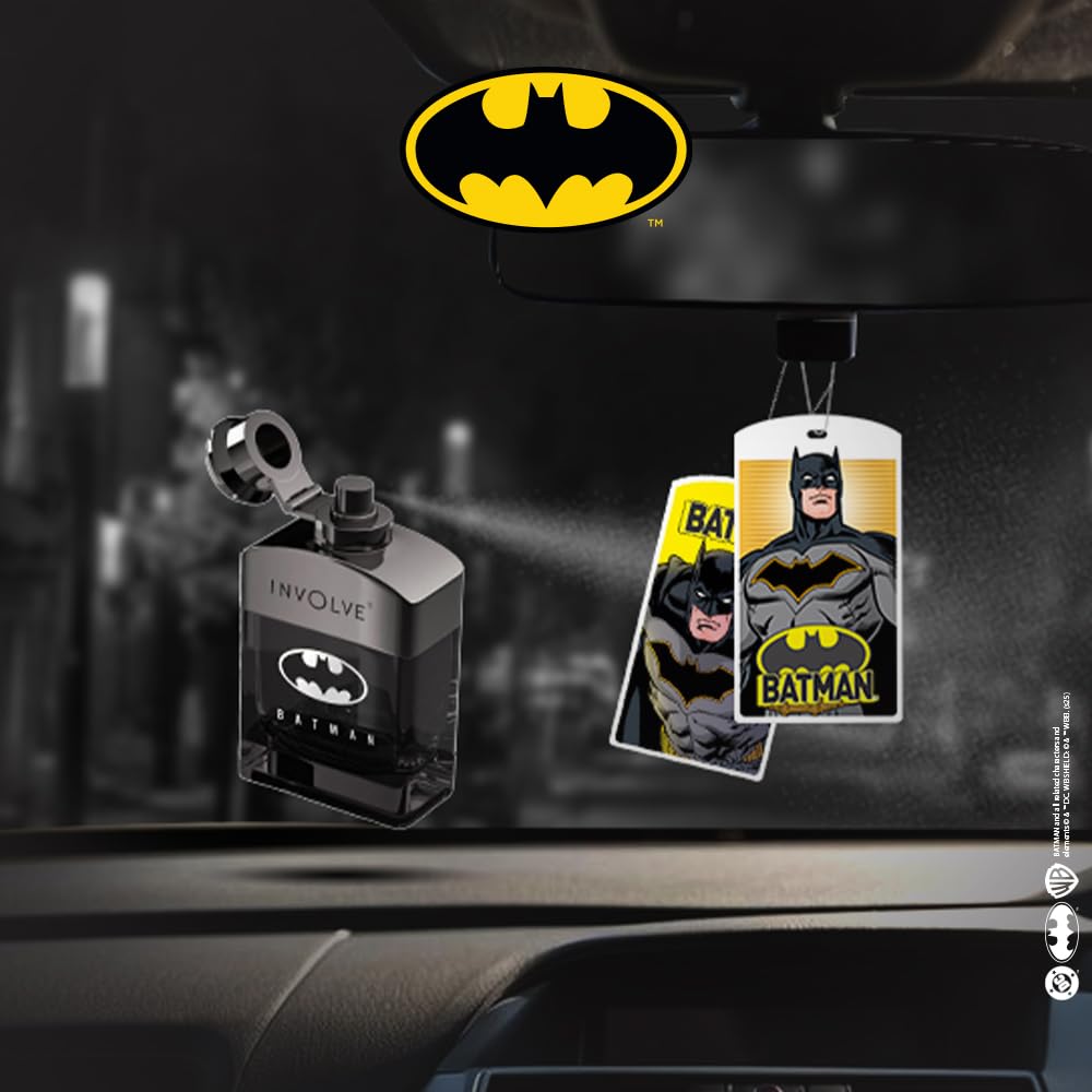 Involve Your Senses Batman Car Perfume Spray with 3 Hanging Cards | DC OFFICIAL MERCHANDISE from Warner Bros | Strong Aquatic Notes - WBSPRO1-50ml | Car Freshener