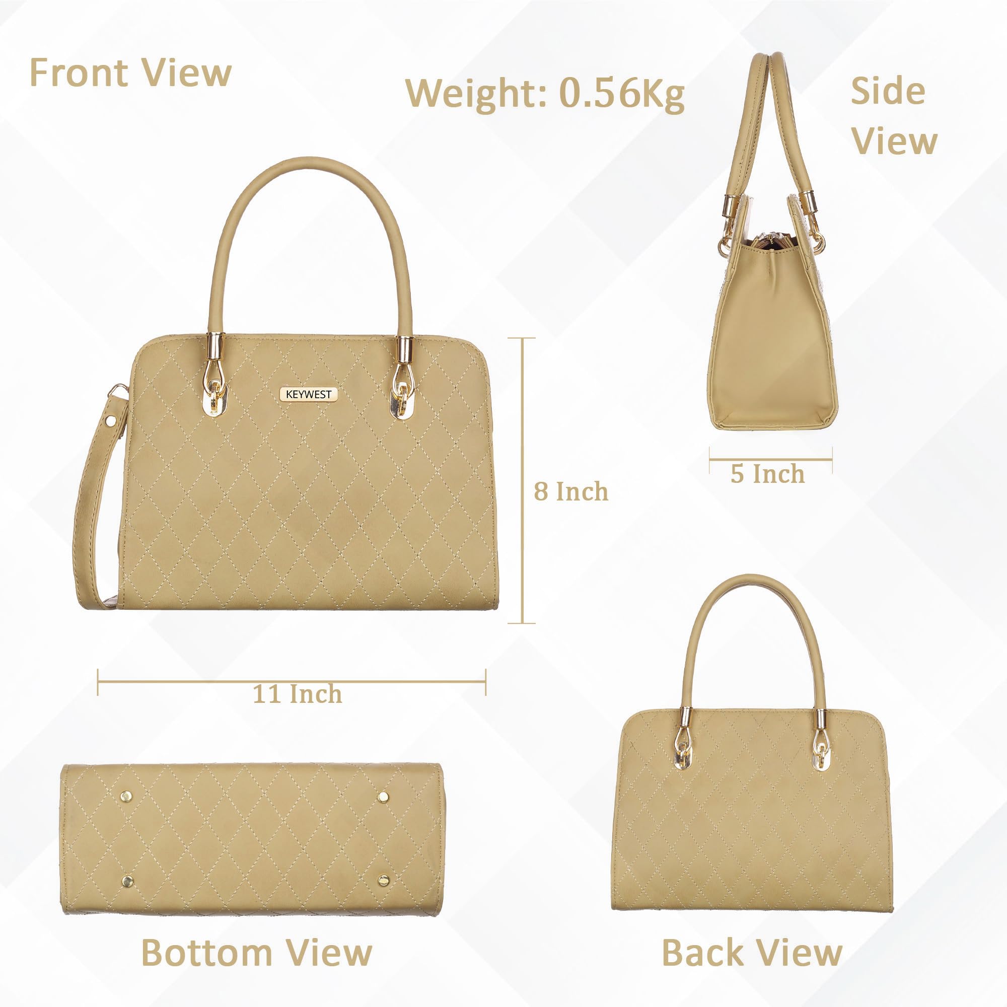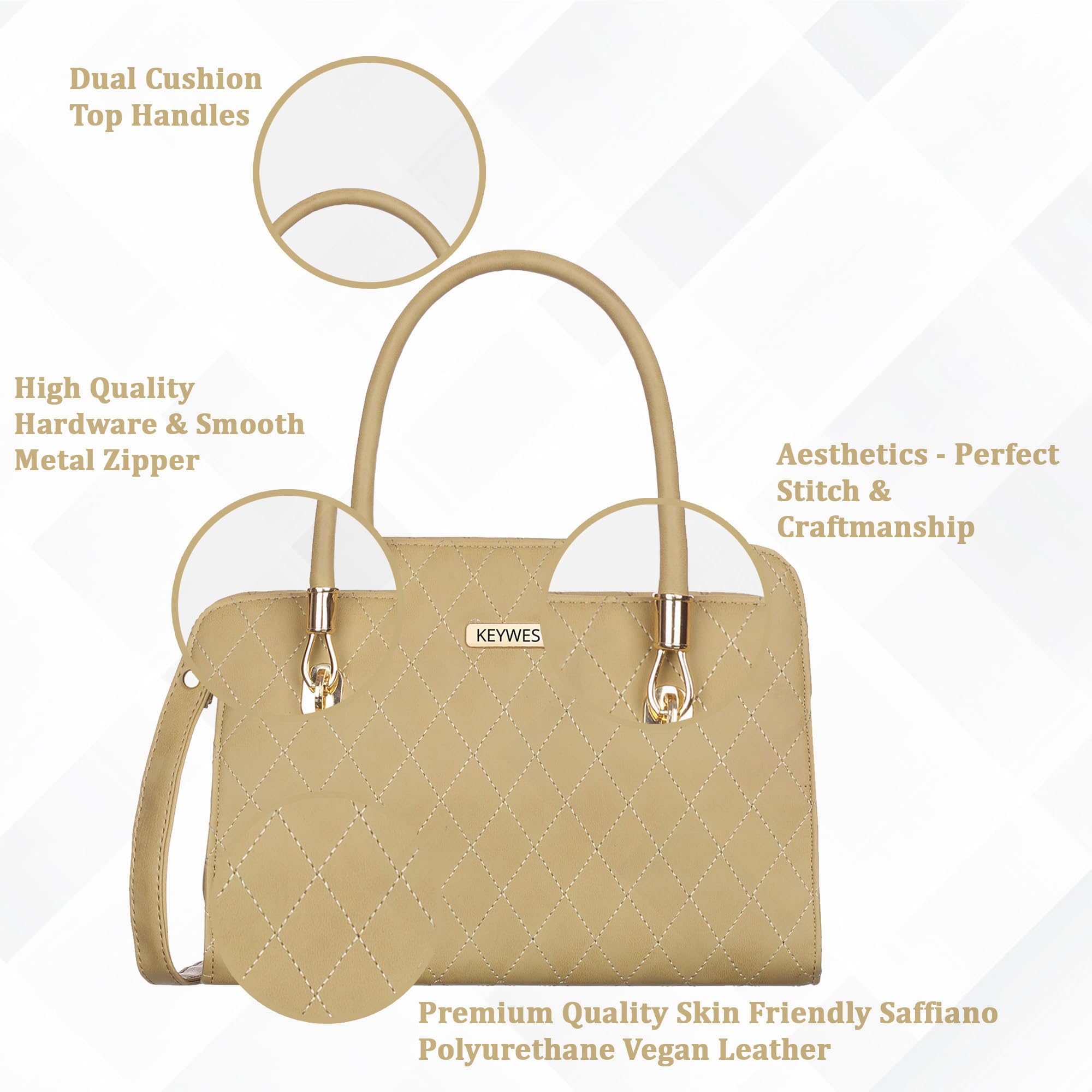 Keywest Women's Diamond Satchel Tote Handbag for Women | Ladies purse | Stylish Shoulder Bag | Gift For Woman | Beige