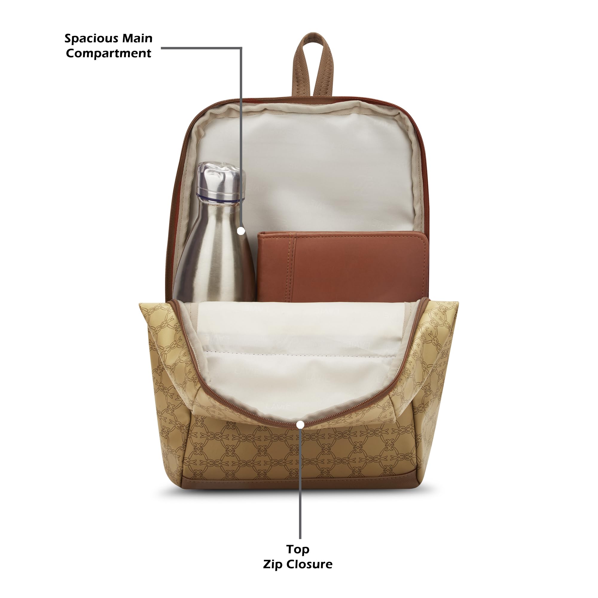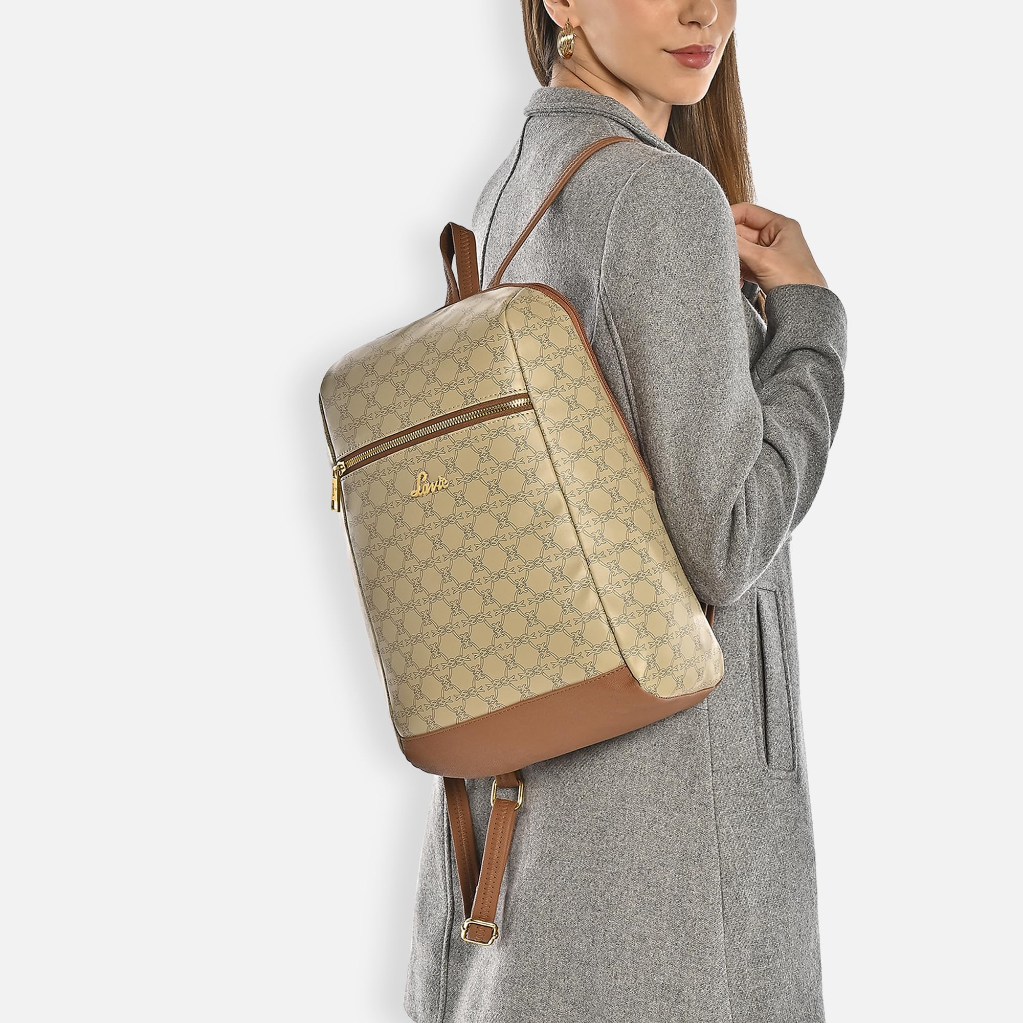 The Cobie backpack is a compact yet spacious accessory featuring the signature Lavie monogram. Designed with a girly aesthetic, it offers a stylish blend of fashion and functionality