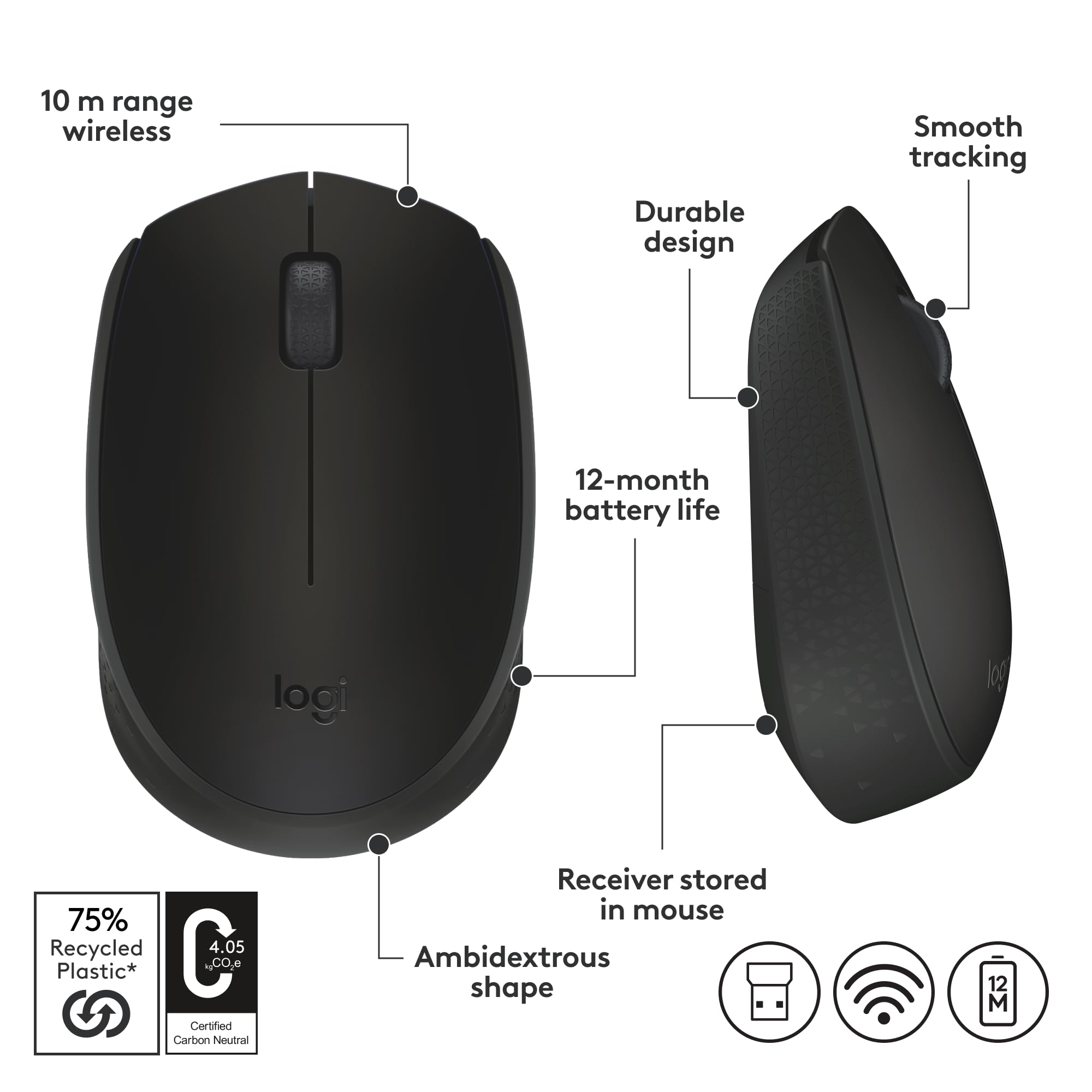 Details: The Logitech B170 is an affordable wireless mouse with reliable connectivity, 12 months battery life and modern design. This wireless mouse offers an excellent 10 meters reliable wireless range along with 1000 dpi. You can easily pair it with your system by just plugging in a tiny wireless receiver into the USB slot. This wireless mouse works on the latest 2.4 GHz wireless technology and offers universal compatibility with Windows, Mac OS and Chrome OS.