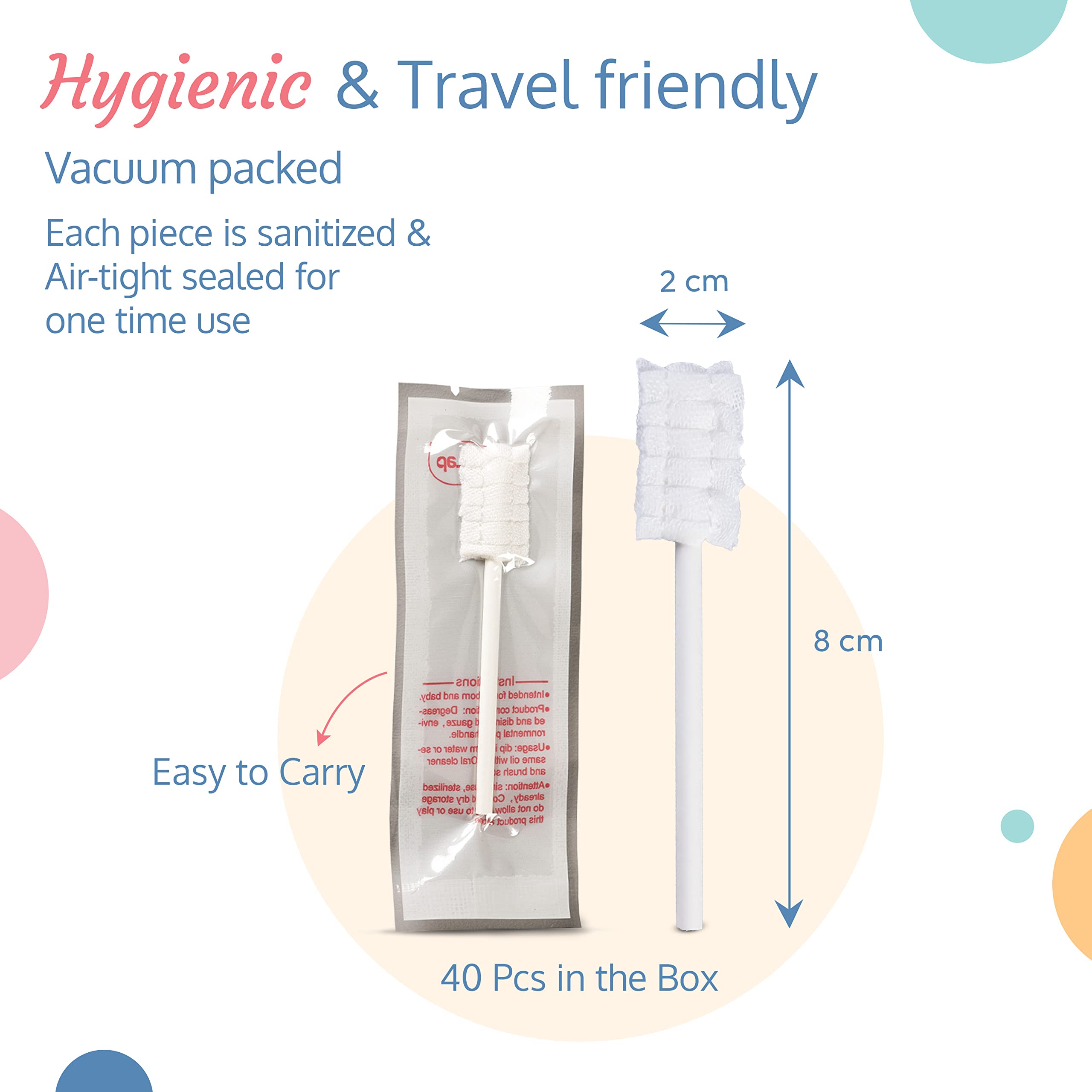 - Individual Vacuum Packing of the swabs: Each baby oral cleaner is sanitized and individually sealed for highest level of hygiene